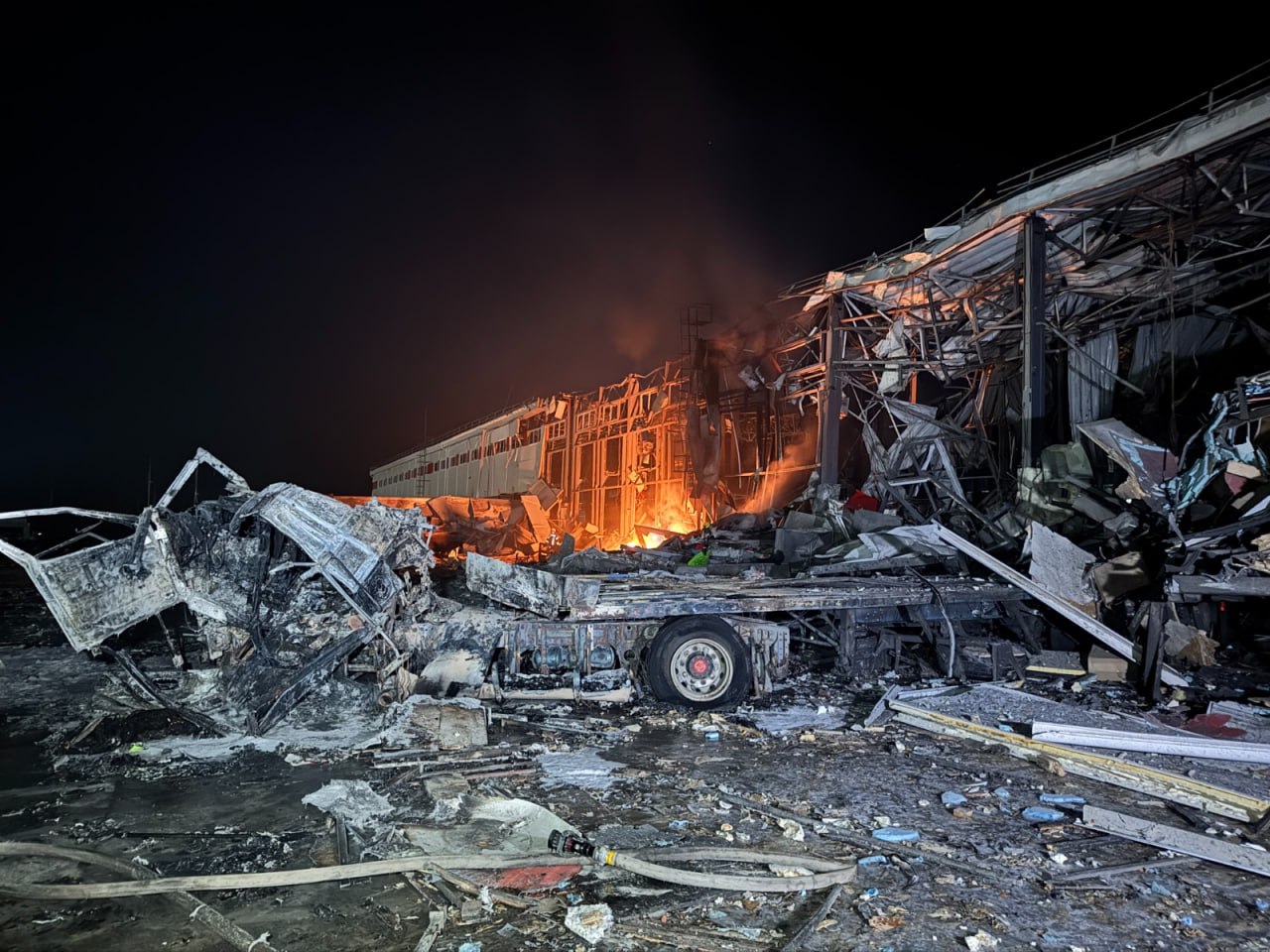 На місці влучання спалахнула пожежа.