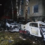 Ракета влучила біля п’ятиповерхівки, в одній з квартир сталася пожежа. Горить автомобіль.