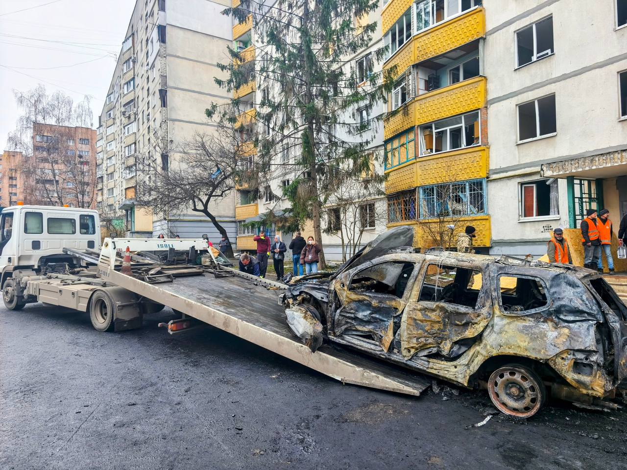 У житлових кварталах Основ’янського району теж фіксували руйнування. Один «шахед» вибухнув на парковці біля багатоповерхівки.
