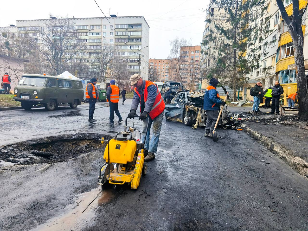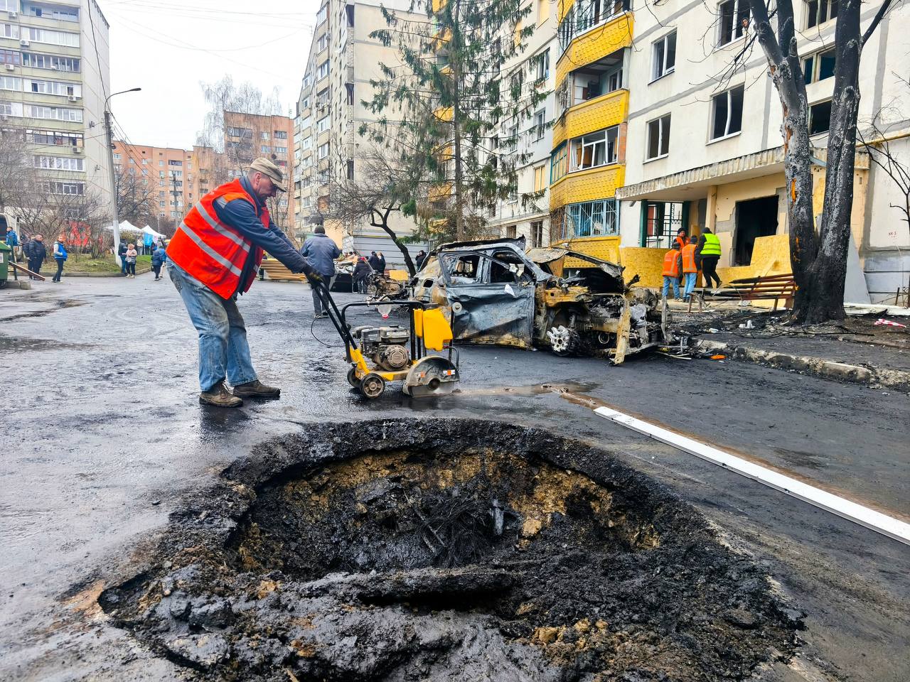 На місцях влучань також працюють волонтери громадської організації «Проліска» та Червоного Хреста, психологи.