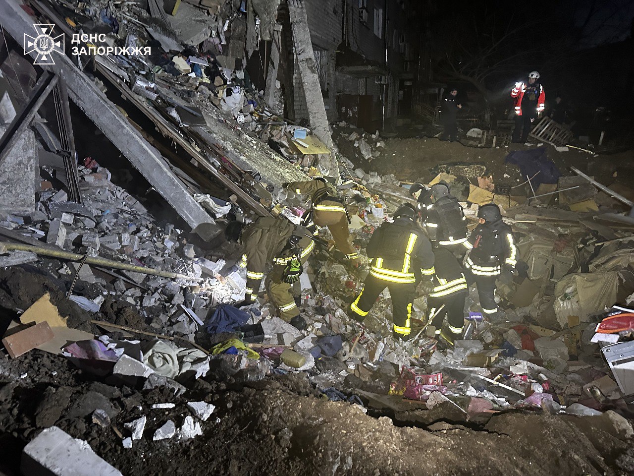 За даними ДСНС Запоріжжя ударом у будинку зруйнувало з першого по четвертий поверх, пізніше завалився і п’ятий. Двох загиблих чоловіків рятувальники знайшли під завалами. Аварійно-рятувальні роботи на місці влучання працівники ДСНС завершили.