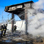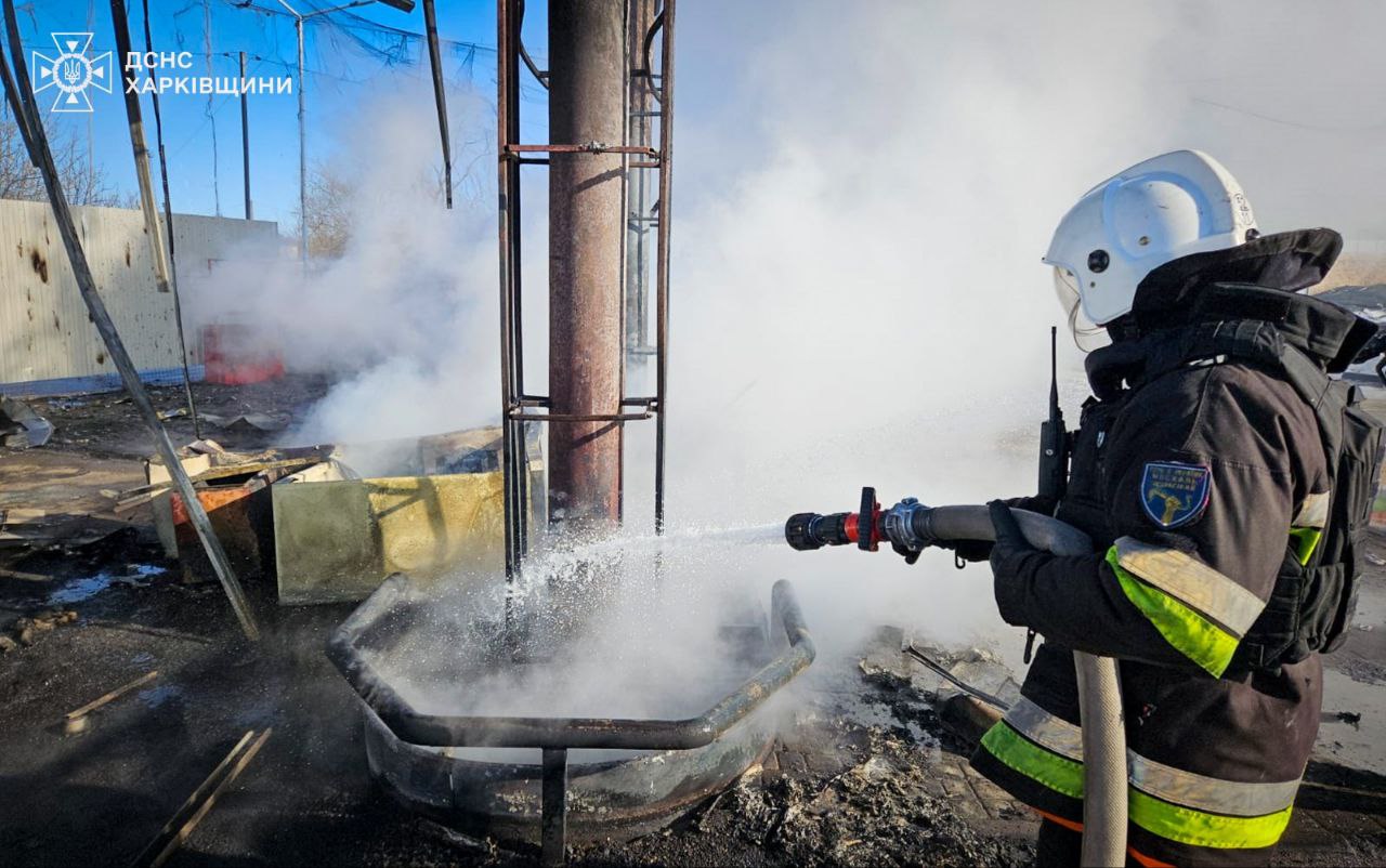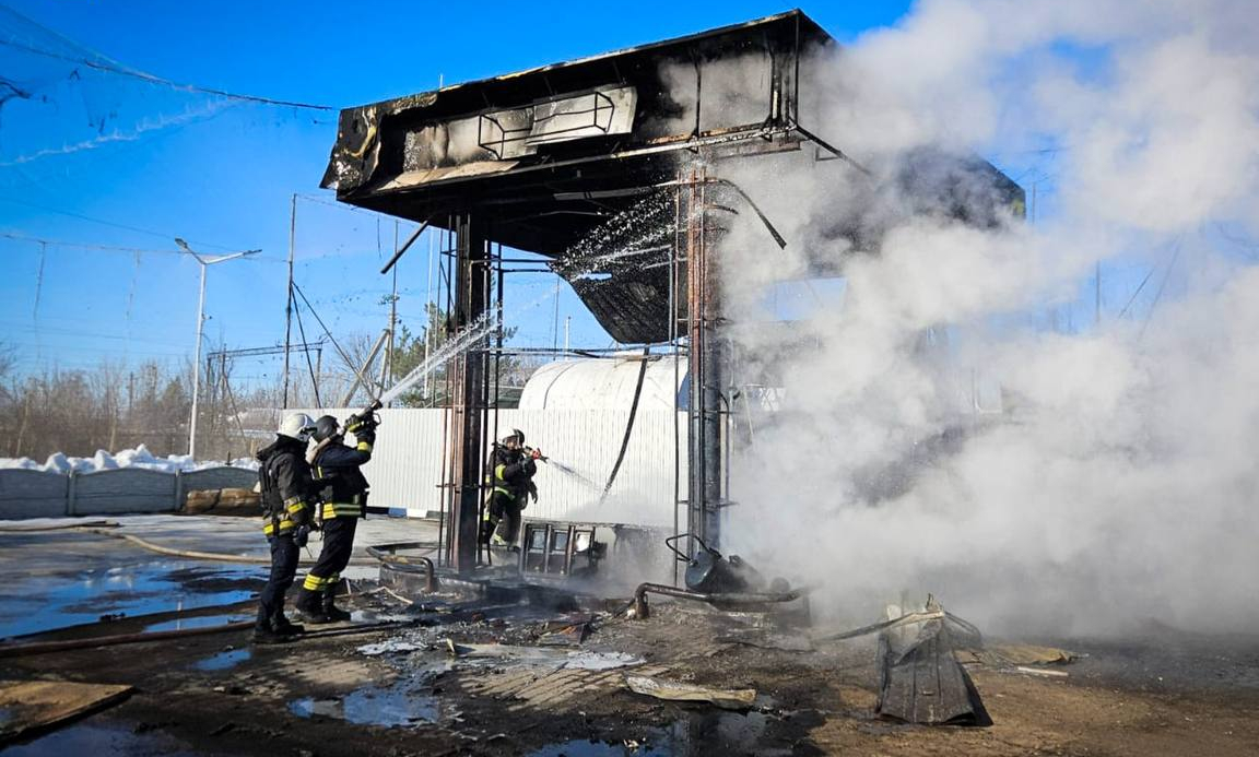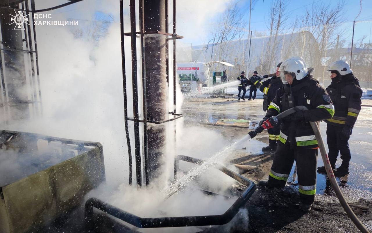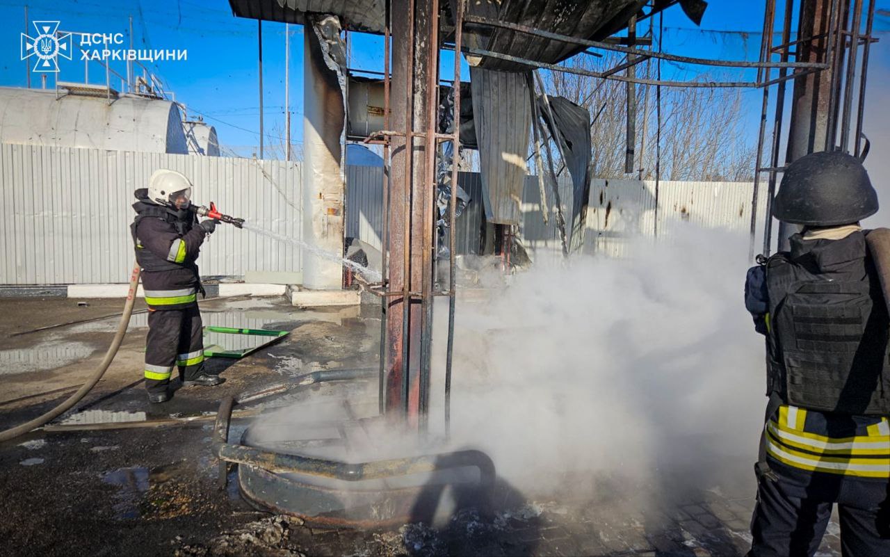 Як зазначили у пресслужбі ДСНС Харківщини, на місці влучання зайнялися заправні колонки на площі близько 20 кв. м, рятувальники ліквідували пожежу.