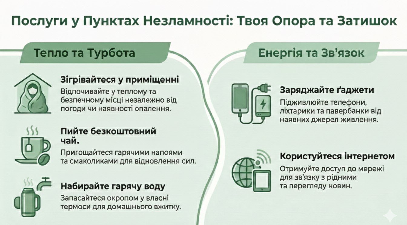 За його інформацією, у громаді розгорнули цілодобові та денні «Пункти незламності», де можна зігрітися, зарядити гаджети.