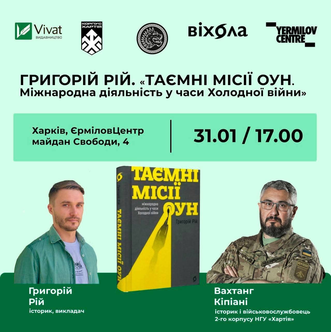 Харків’ян 31 січня запрошують на зустріч з істориком Григорієм Рієм, який презентує свою книгу «Таємні місії ОУН. Міжнародна діяльність у часи Холодної війни».