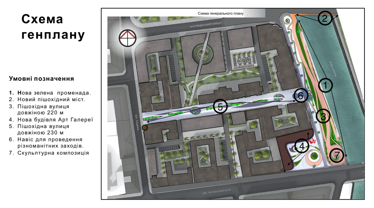 У 2018 році архітектурне бюро «Дроздов та партнери» презентувало концепцію «Зеленого коридору», що охоплювала і цю частину набережної та включала велосипедну і пішохідну зони. У 2021 році міськрада писала про проєкт «Зелений каркас» зі схожими ідеями. До цієї теми повернулися під час повномасштабної війни.