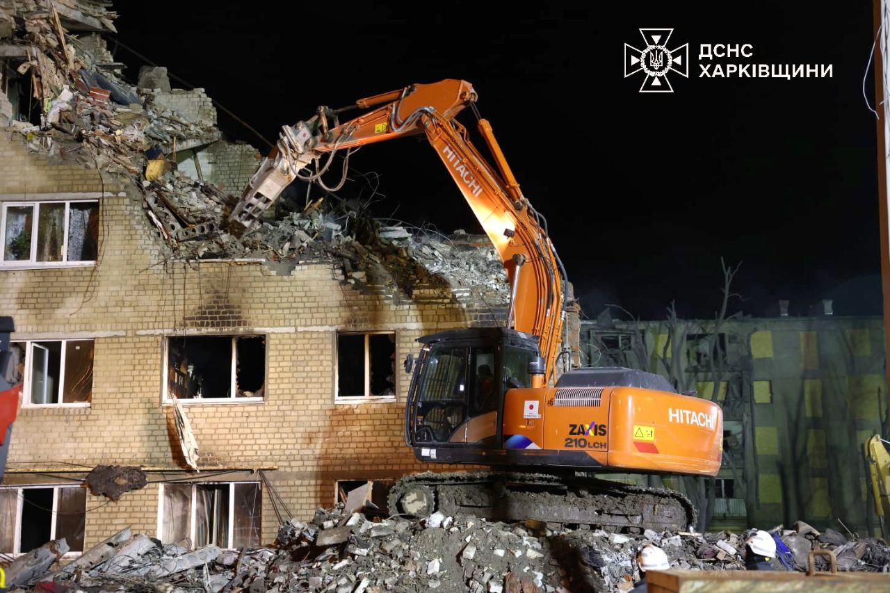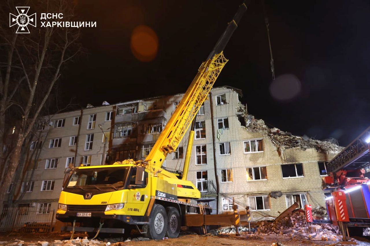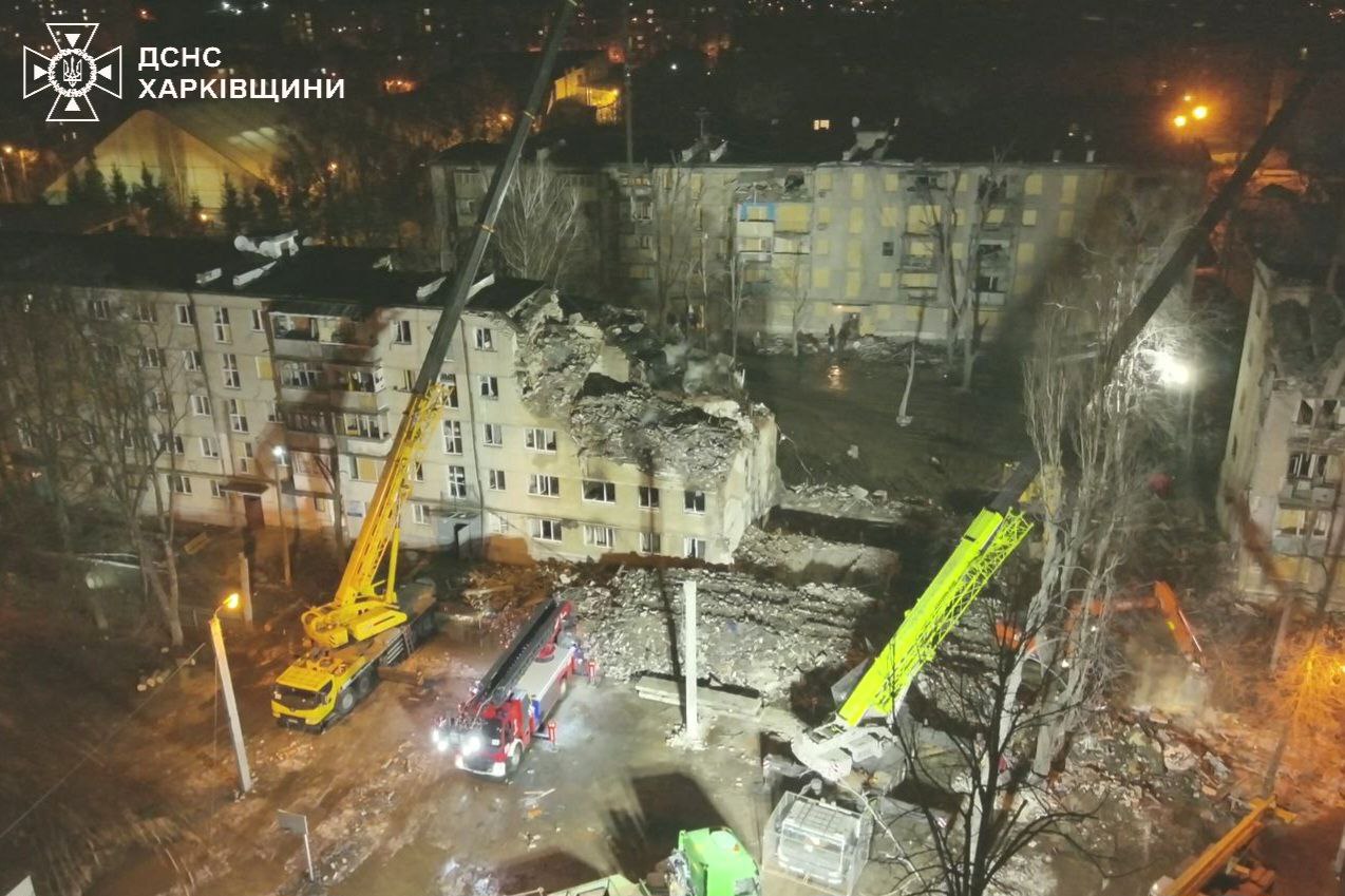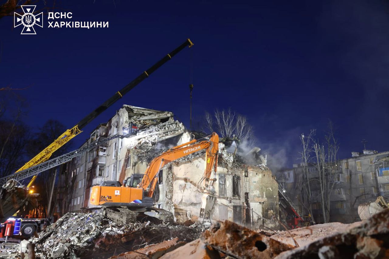 У Харкові триває розбір завалів після влучання ракети у 5-поверхівку