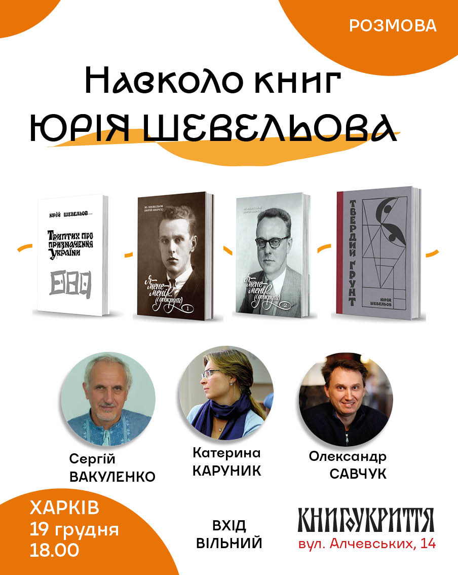 У п’ятницю, 19 грудня, у Харкові відбудеться зустріч, присвячена творчій спадщині українського мовознавця й інтелектуала Юрія Шевельова. Участь у зустрічі візьмуть філологи Катерина Каруник та Сергій Вакуленко.