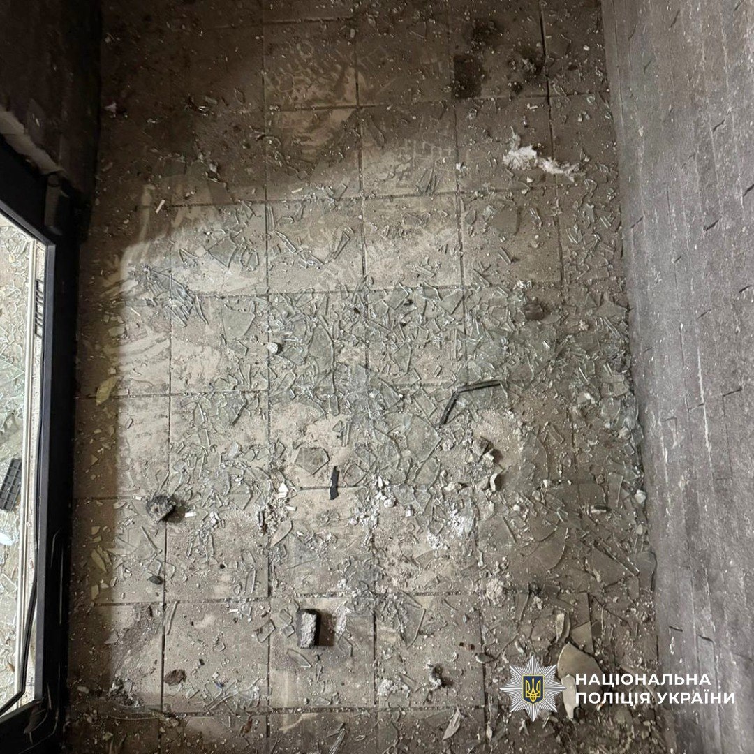 Пошкоджено скляні двері на вході до підвалу магазину. Постраждалих не було.