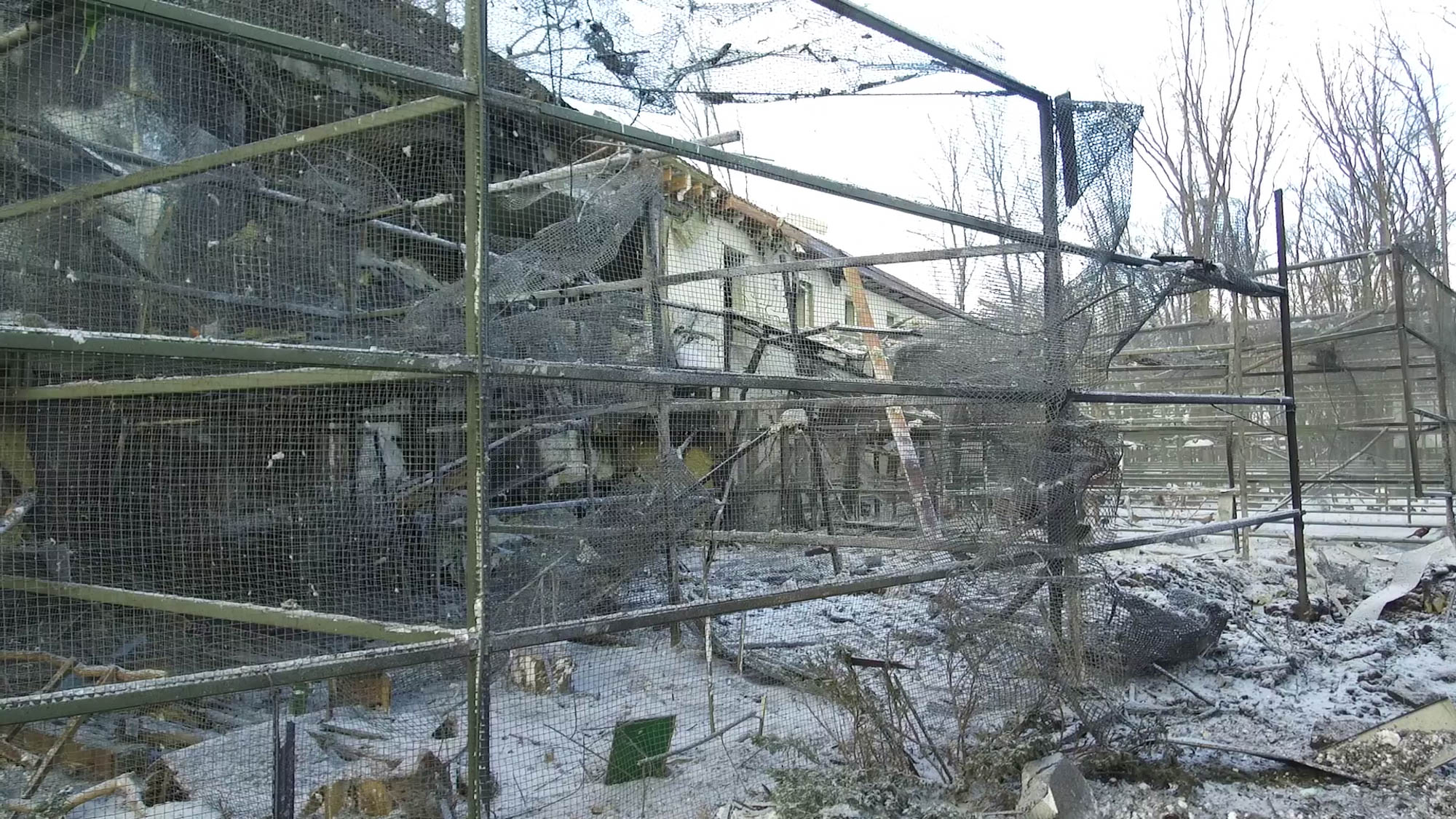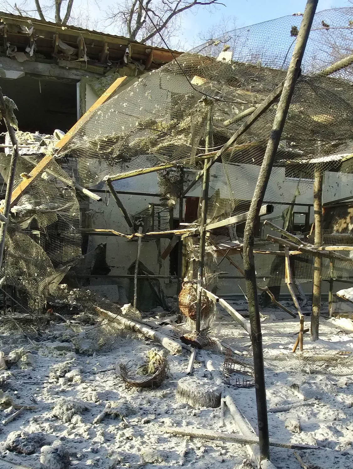 У найбільш зруйнованій будівлі, двоповерховій, жили декоративні кури, фазани, цесарки. Деякі птахи після вибуху опинилися біля вольєрів, одного помітили на дереві.