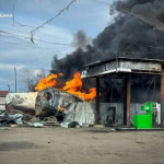 У селищі Золочів внаслідок дронової атаки сталася пожежа на АЗС, повідомили в ДСНС Харківщини.