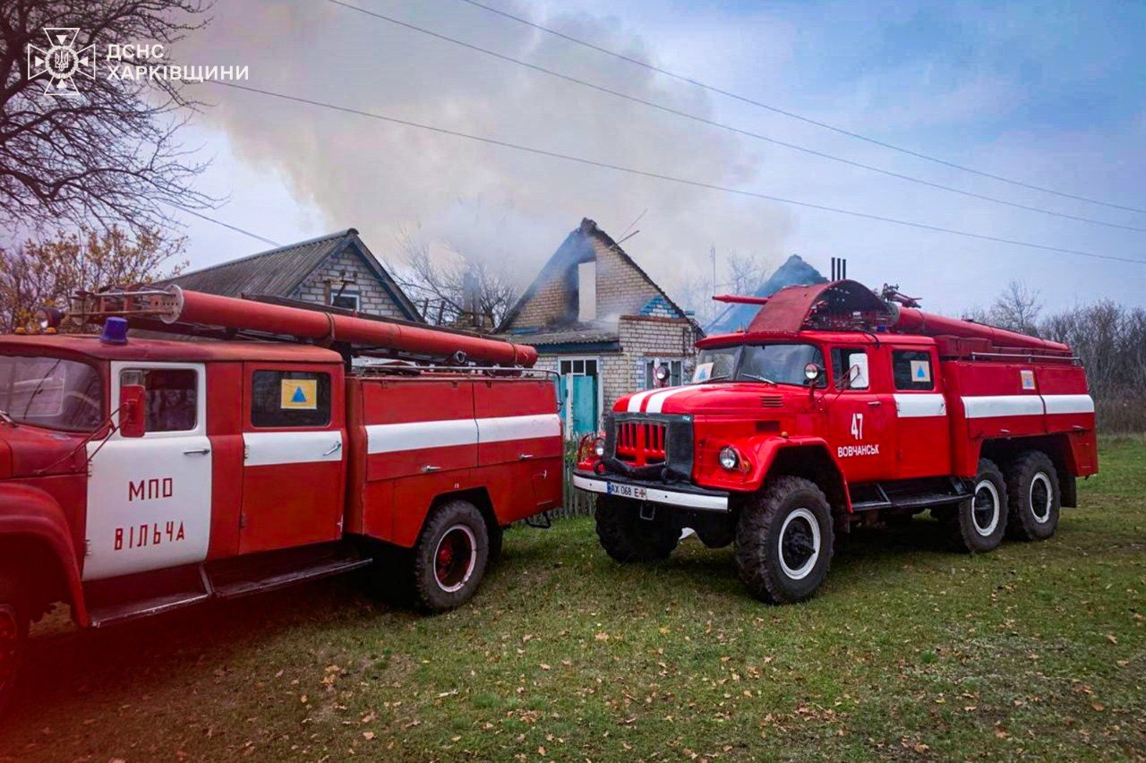 Внаслідок удару загинула 43-річна жінка, будинок загорівся, повідомили 7 листопада у ДСНС Харківщини.