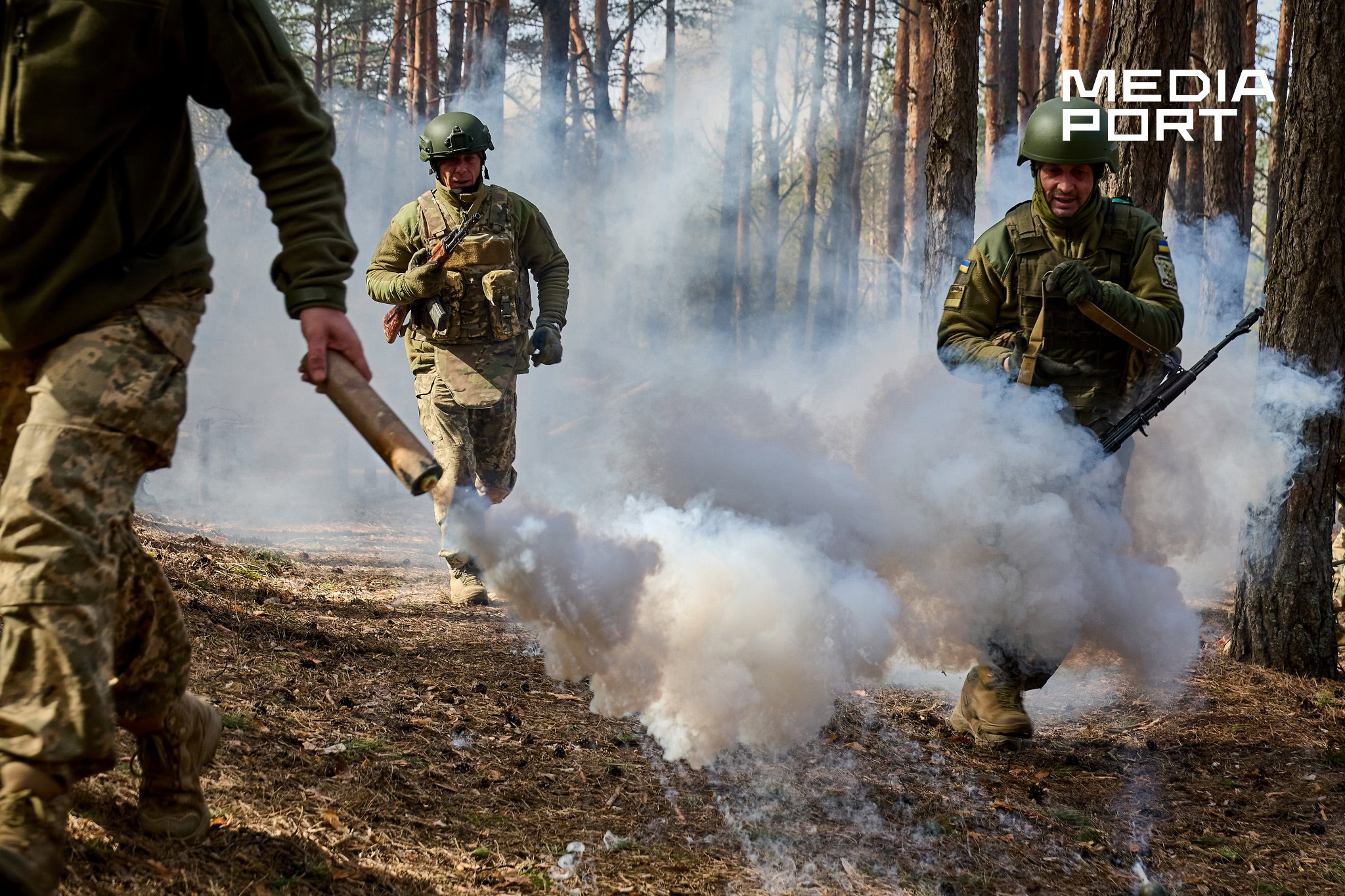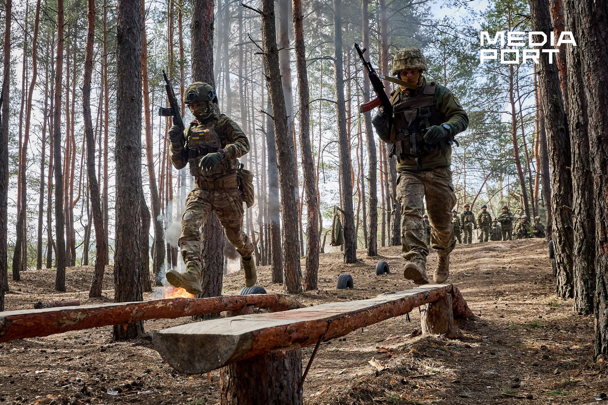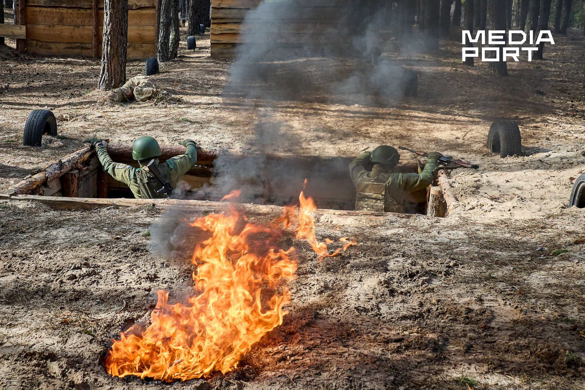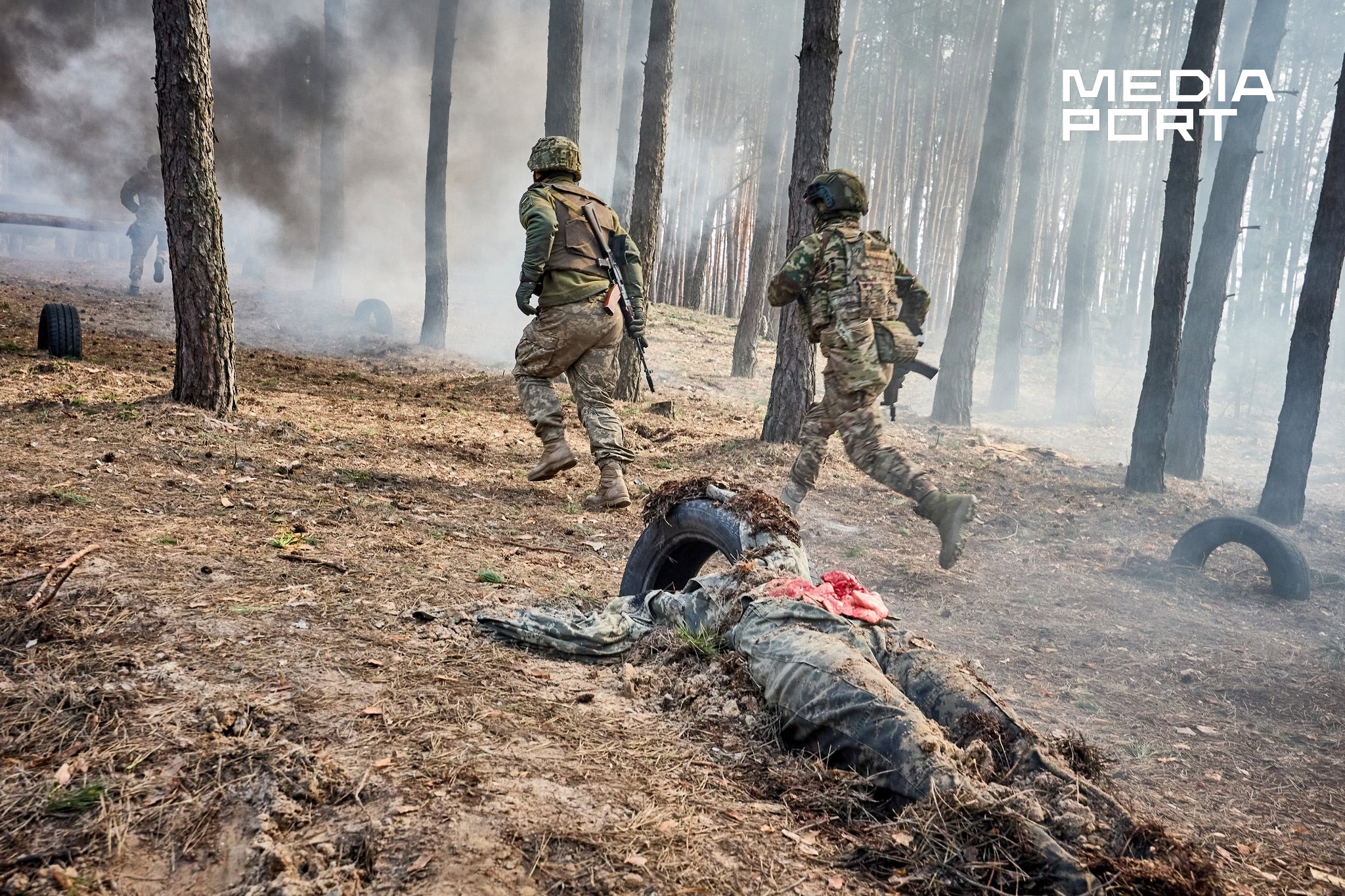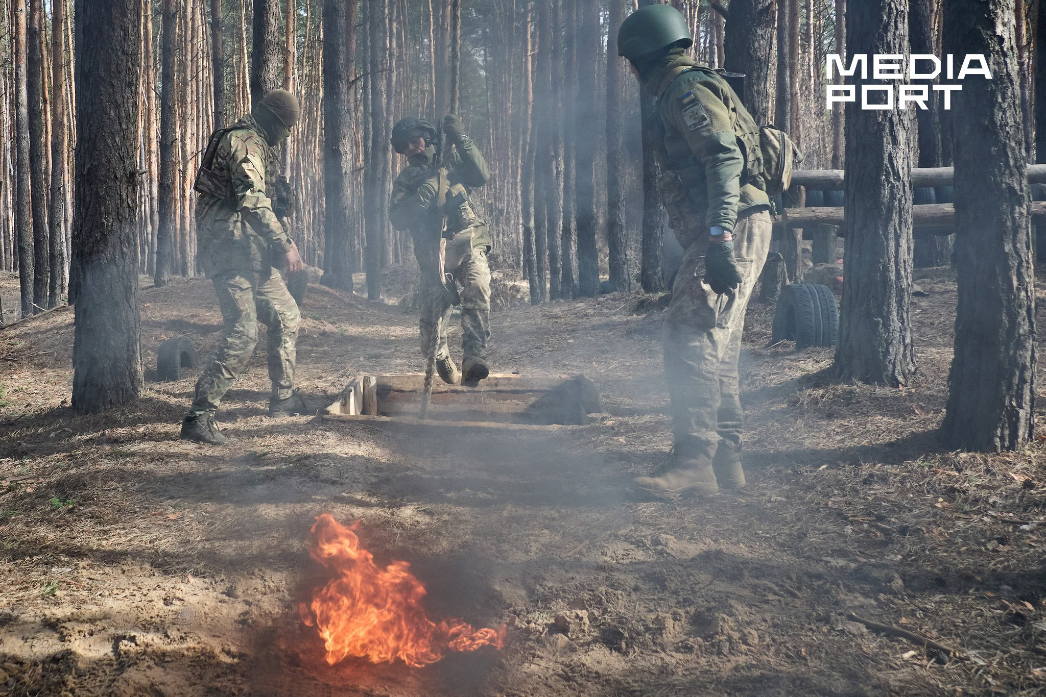 На полігоні імітують вибухи гранат, усе затягнуто димовою завісою від палаючих шин, а серед перешкод розкидані манекени, що символізують поранених чи загиблих. У такому хаосі військові мають не просто пробігти дистанцію, а залишатися зосередженими та виконувати завдання інструкторів — прикордонників, які мають бойовий досвід.