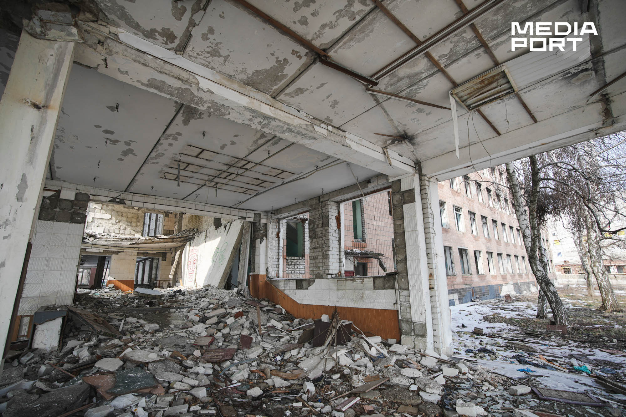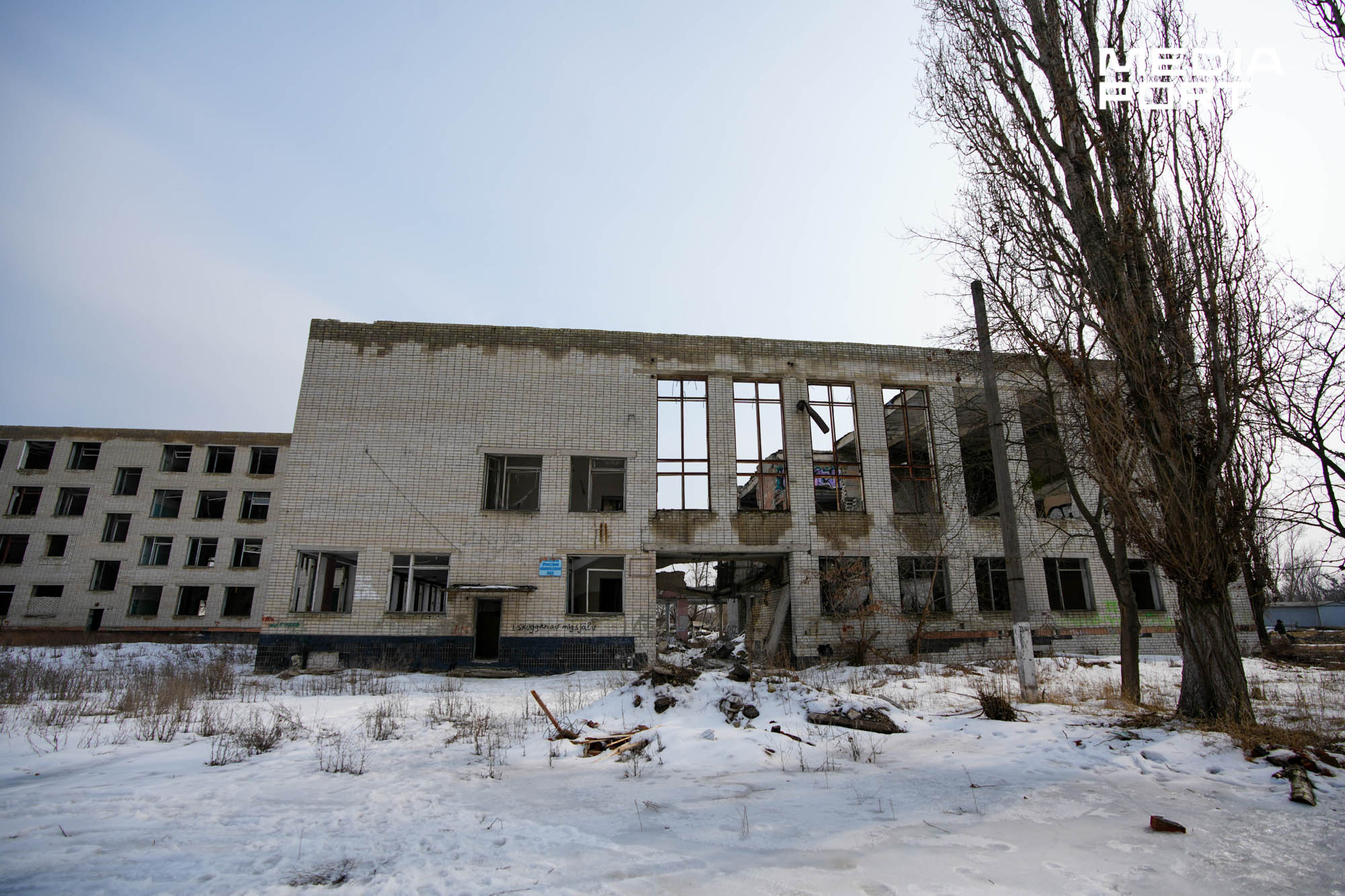 «Якраз друге вікно ліворуч, ми тут були утрьох. Денис стояв навпроти вікна. Льоша між перегородками, а я трохи далі. Перший приліт був у кут будівлі. І другий був сюди ж. Перший КАБ нас накрив. Вийшло, що уламки полетіли в Дениса. Це мій сусід, однокласник мого сина, він виріс на моїх очах, добровольцем пішов разом з нами на фронт у лютому… Ми тільки повернулися із завдання, Денис мав з нами поговорити. Не встиг», — згадує Фартушний.