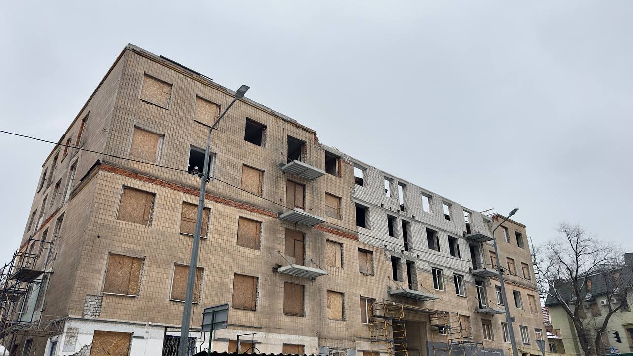 Ремонт будівлі в центрі міста, що зазнала руйнувань у 2022 році, триває.