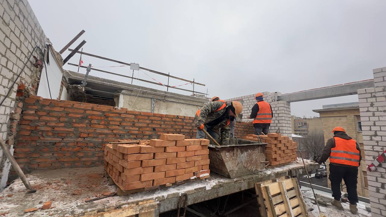 У будинку на вул. Свободи, 11/13 частково відновили зовнішні та внутрішні стіни, перекриття. Нині такі роботи проводять на п’ятому поверсі.