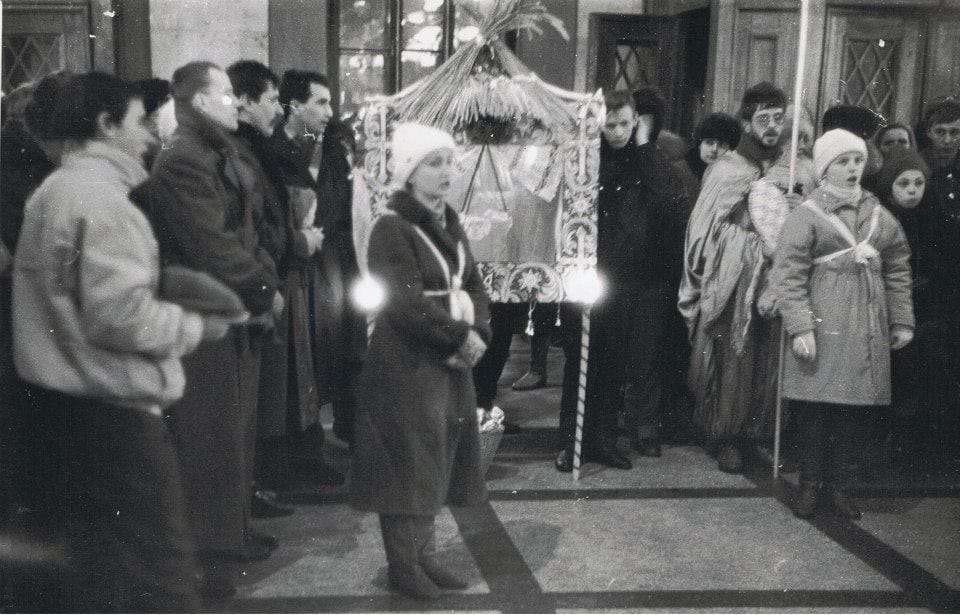 Потім потихеньку, коли Україна стала незалежною, люди почали сприймати це краще, запрошувати до себе колядувати. Нас запрошували по хатах, але в першу чергу ми йшли сюди в церкву, тут ми завжди ставили виставу, завжди на площі, на майдані Свободи. Також ми заходили в різні установи, кав’ярні, метро, скрізь, де люди були.