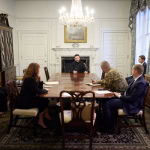 Напередодні зустрічі з Володимиром Зеленським Дональд Трамп 16 жовтня провів телефонну розмову з президентом рф. Президенти попередньо запланували зустрітися в Угорщині. За словами Трампа, ця зустріч пройде протягом двох тижнів. Президента України на неї не запрошують, однак президент України «буде на зв’язку», заявив під час зустрічі у Білому домі Трамп.