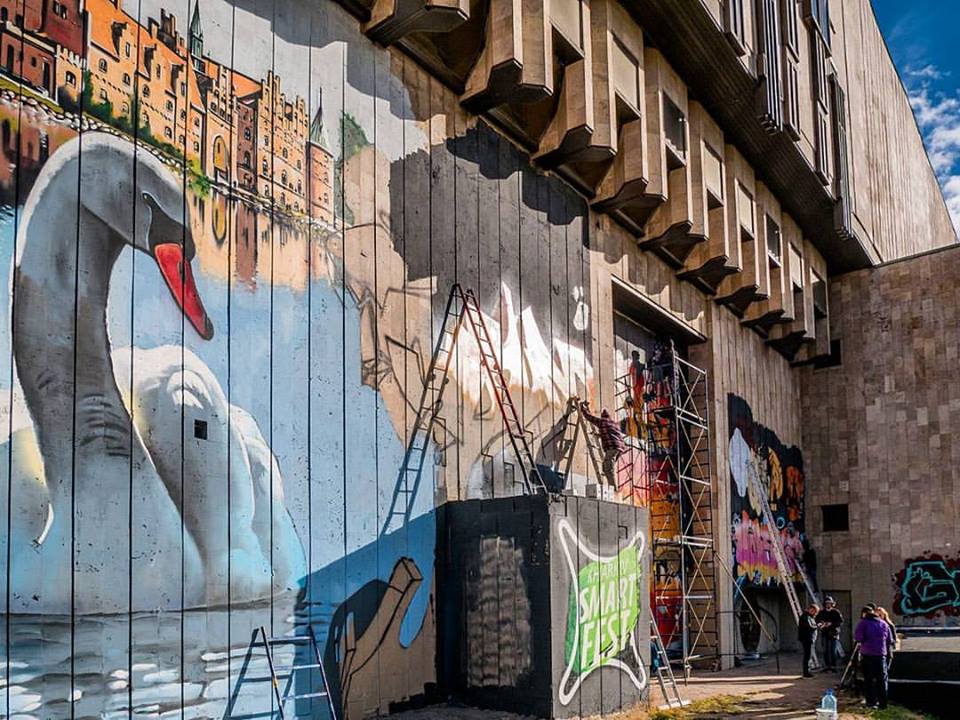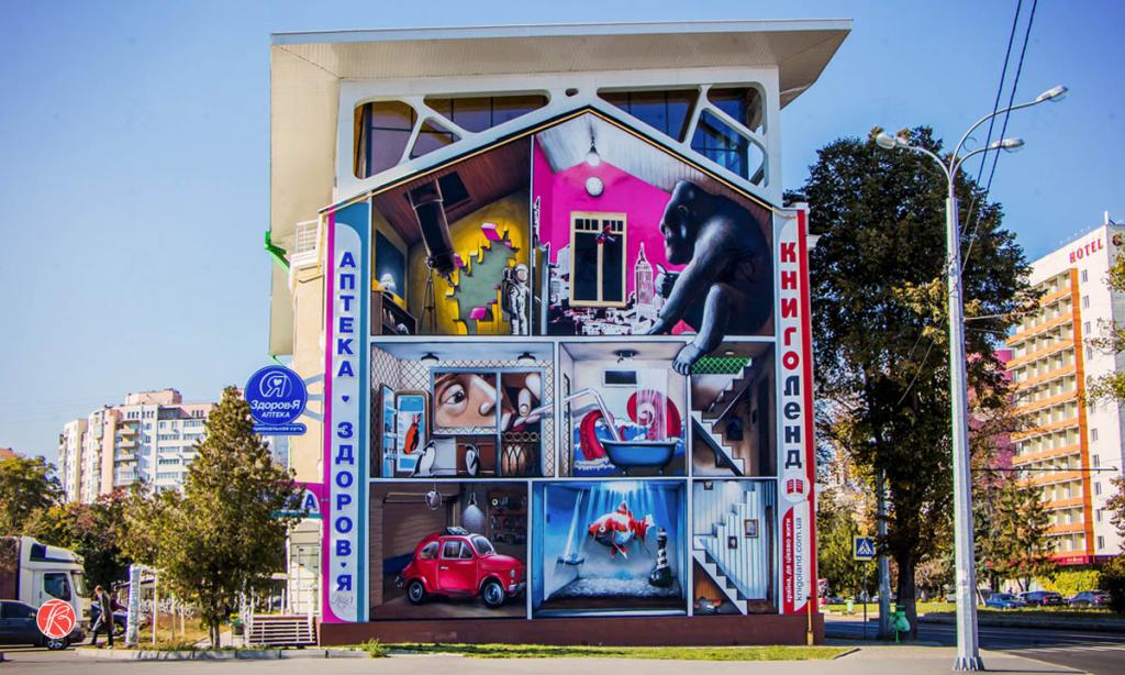 Главная доминанта городского пространства — архитектура, муралисты работают с фасадами. Я постоянно участвую в екатеринбургском фестивале «Стенограффия». Так вот, архитектура Екатеринбурга похожа на харьковскую: много конструктивизма, дореволюционных построек, которые сохранилось во время войны. В век глобализации в рамках фестивалей важно показать людям кто ты, откуда. По сути, задача — рассказать историю в картинках.