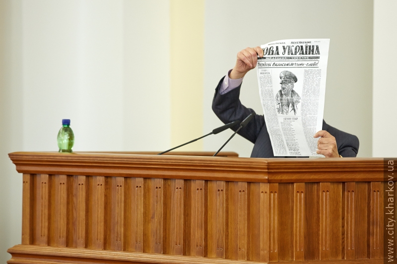 На «закуску» он оставил решение президиума Харьковского горсовета от 1994 года. Начал было зачитывать документ («такие действия часопису «Нова Украина» являются вызовом общественному мнению, задевают честь и достоинство граждан Харькова, одного из наиболее пострадавших от нацистско-немецких оккупантов…»), но в пять минут не вложился.