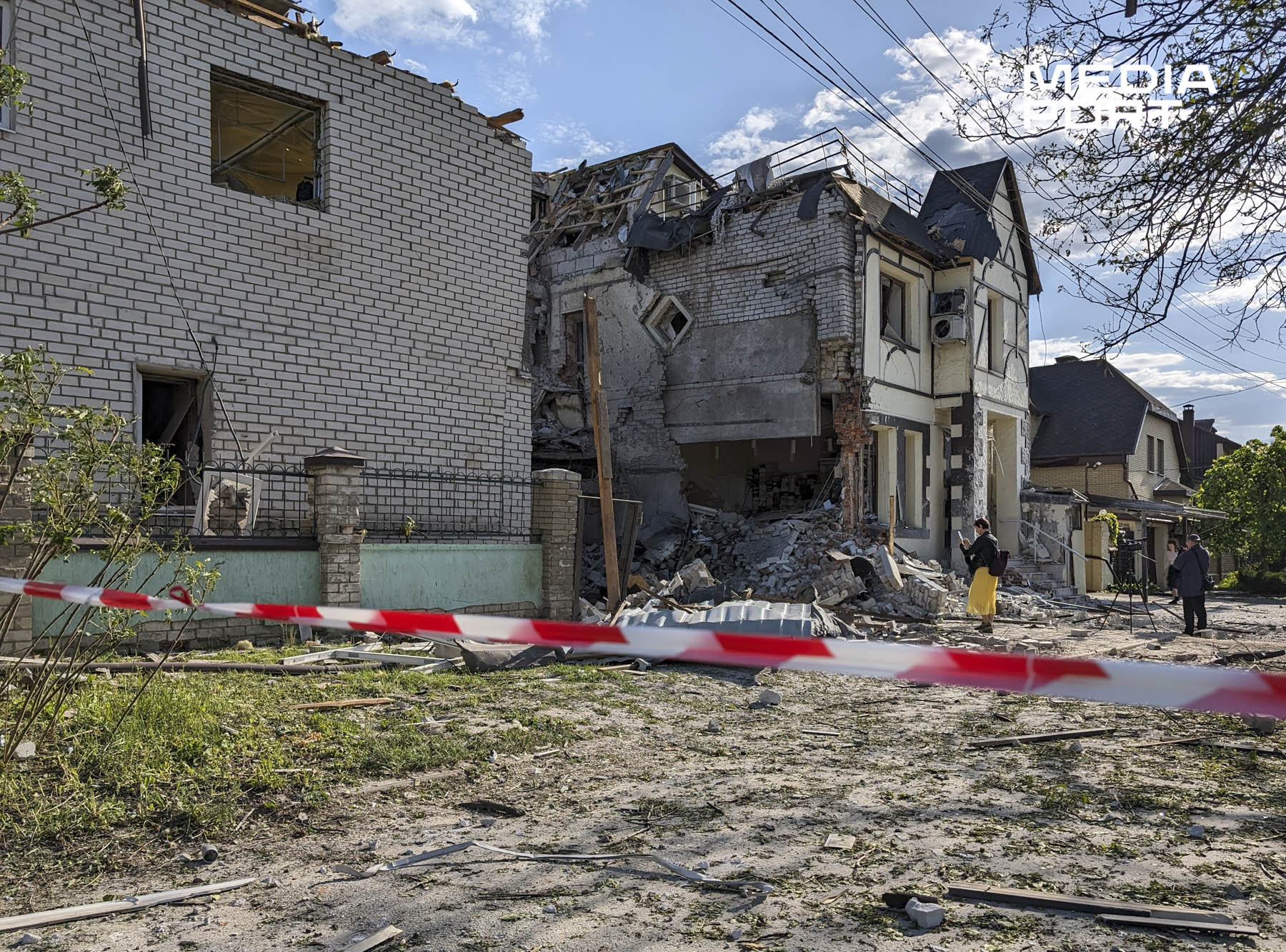 Наслідки удару у приватному секторі в Шевченківському районі кореспондент «МедіаПорта» бачив 5 травня. На місці Тетяна Кагановська розповіла, що усередині був охоронець, якого контузило від удару. Коли стався обстріл, ректорка підходила до будинку і бачила, як бомба влучила в її дім. На її ділянці значно зруйновані щонайменше дві двоповерхові будівлі.