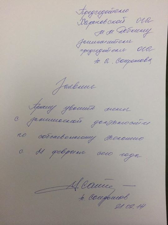 Заместитель председателя Харьковской обладминистрации Юрий Сапронов написал заявление об увольнении по собственному желанию. Сапронов курировал экономические вопросы и вопросы агропромышленного комплекса. Также заявление об увольнении написал заместитель губенатора по правовым вопросам — Олег Анпилогов.