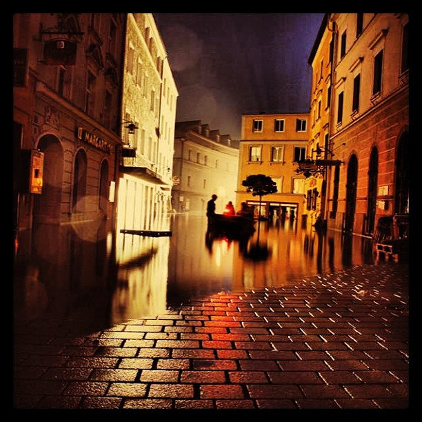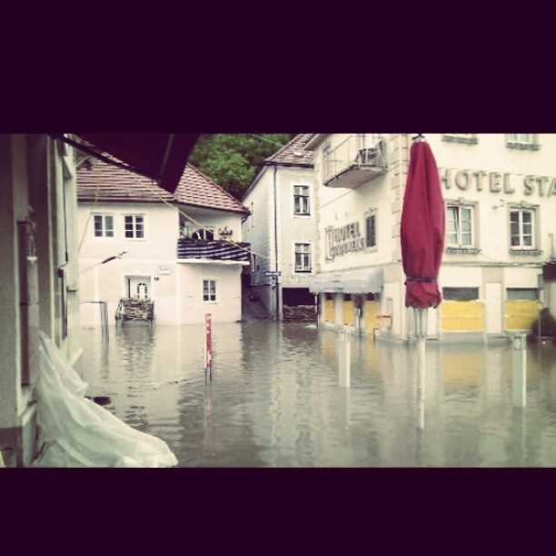 Реки вышли из берегов. В нескольких местах сошли оползни. Улицы города Мельк (Нижняя Австрия) превратились в каналы.