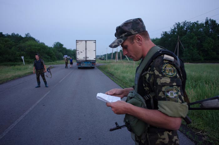 На трассе грузовик пошёл быстро, не останавливаясь на блокпостах ополченцев, не притормаживая в населённых пунктах. Мы ехали в Успенку. За 4 километра до границы грузовик остановился на блокпосту украинских военных. Солдат привычно подошёл к кабине, водитель протянул ему документы на «груз»…