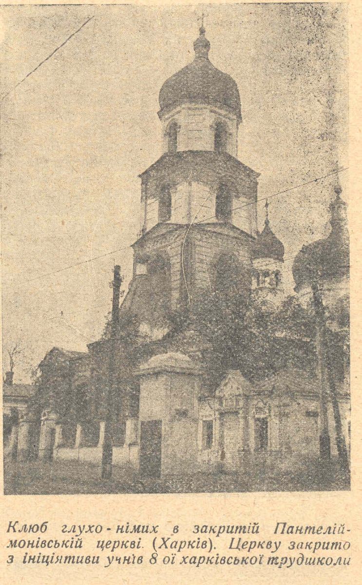 Клуб той, між іншим, теж розміщувався у колишній церкві — Пантелеймонівській. І отримав, крім одягу, десять столів, чотири стільці і табуретку з шафою. А єпархіальному управлінню вручили ще й чотири пуди церковних свічок. Бо вони, на відміну від червоного сукна, не надавалися для жодних більшовицьких ритуалів.