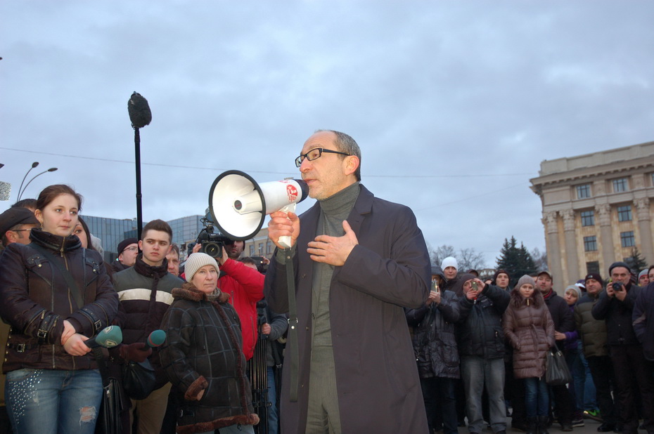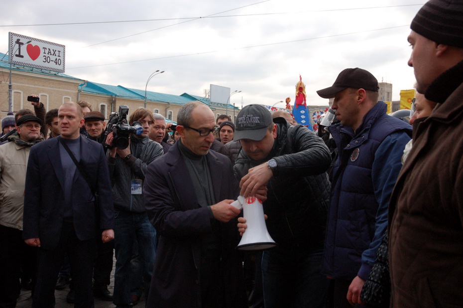 В окружении этих людей, журналистов, милиции и охраны Кернес подходит к зданию администрации. Просит «свиту» остановиться, не провоцировать конфликт, дать ему слово.