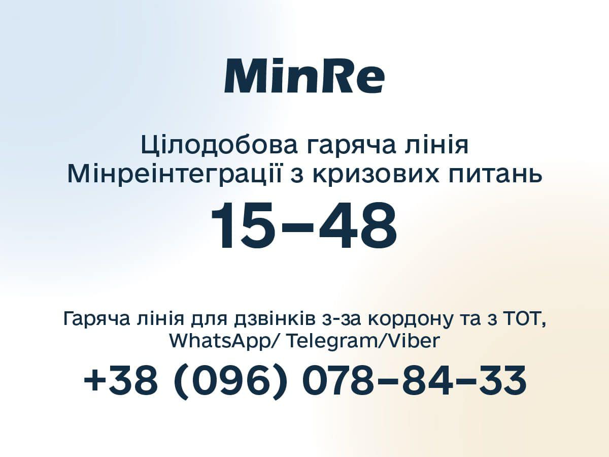 З питаннями щодо евакуації Мінреінтеграції росить звертатися за номерами: