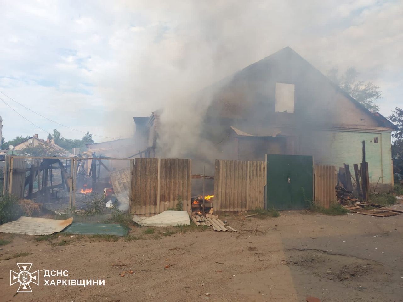 «Горіли: будинок барачного типу, 2 господарчі споруди та 3 автівки на загальній площі близько 400 м кв.», — повідомляє Головне управління ДСНС Харківщини.