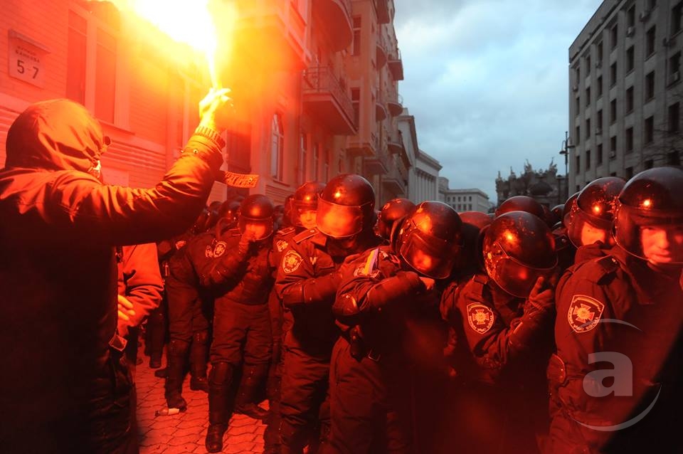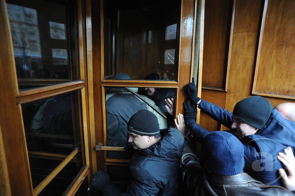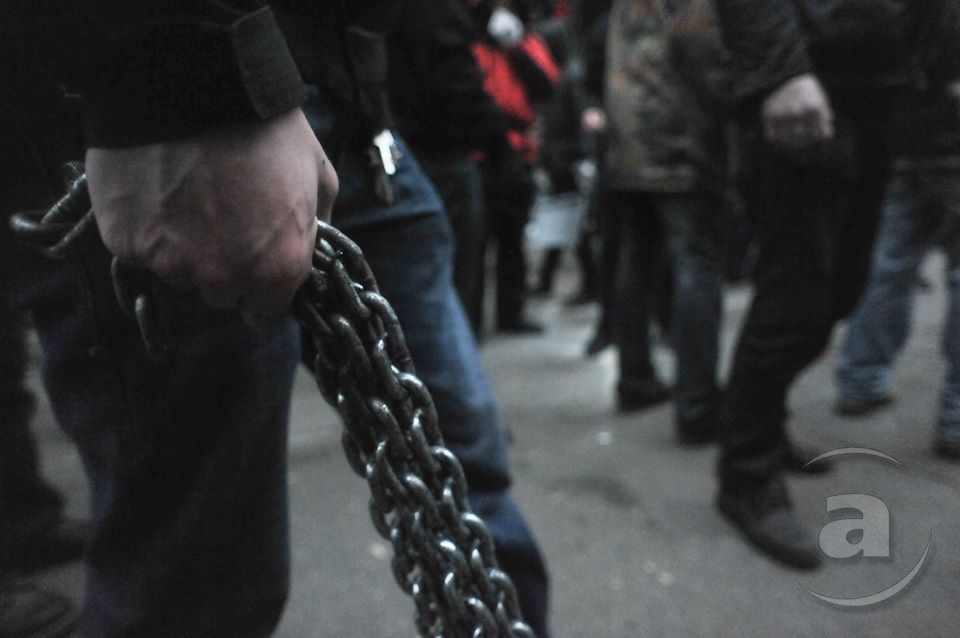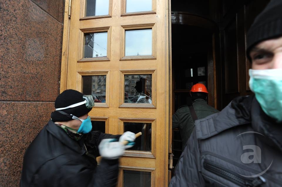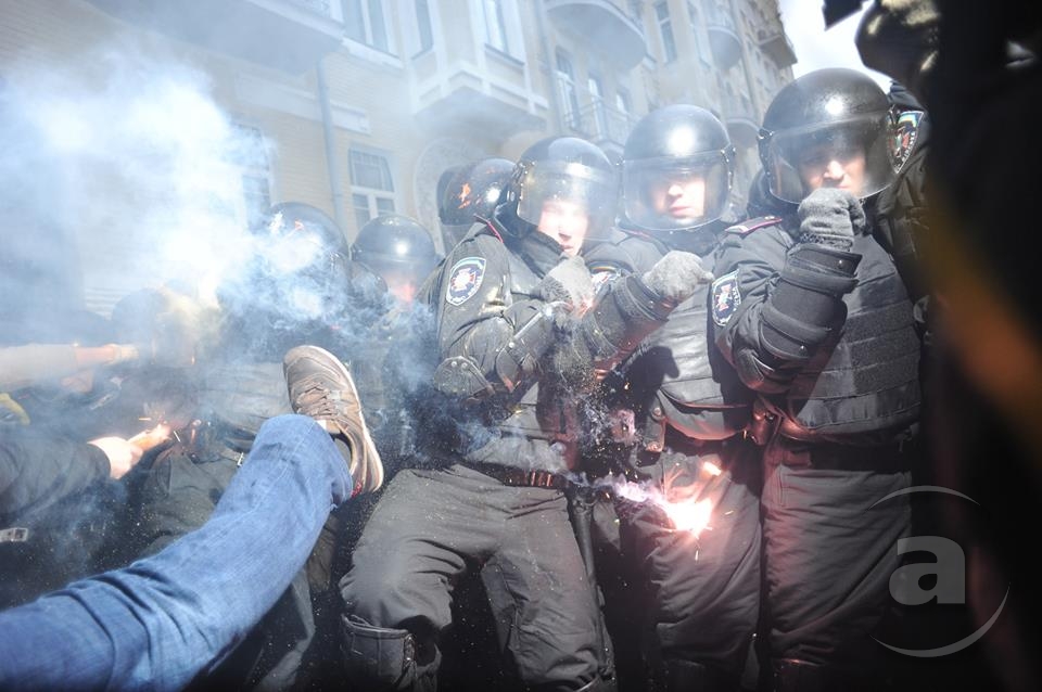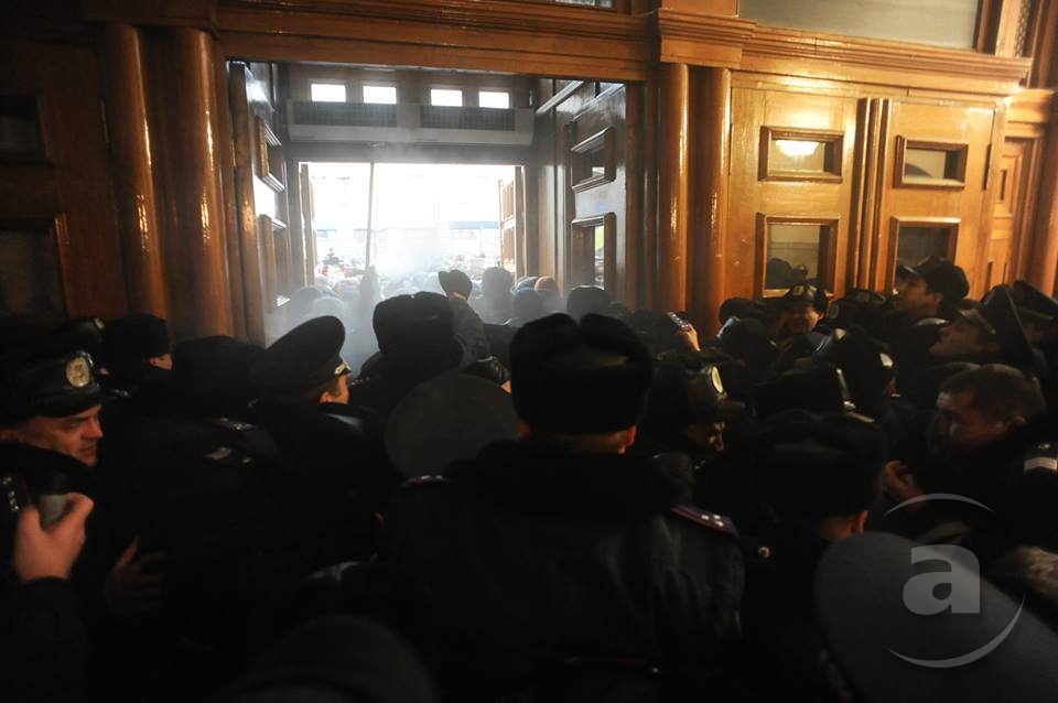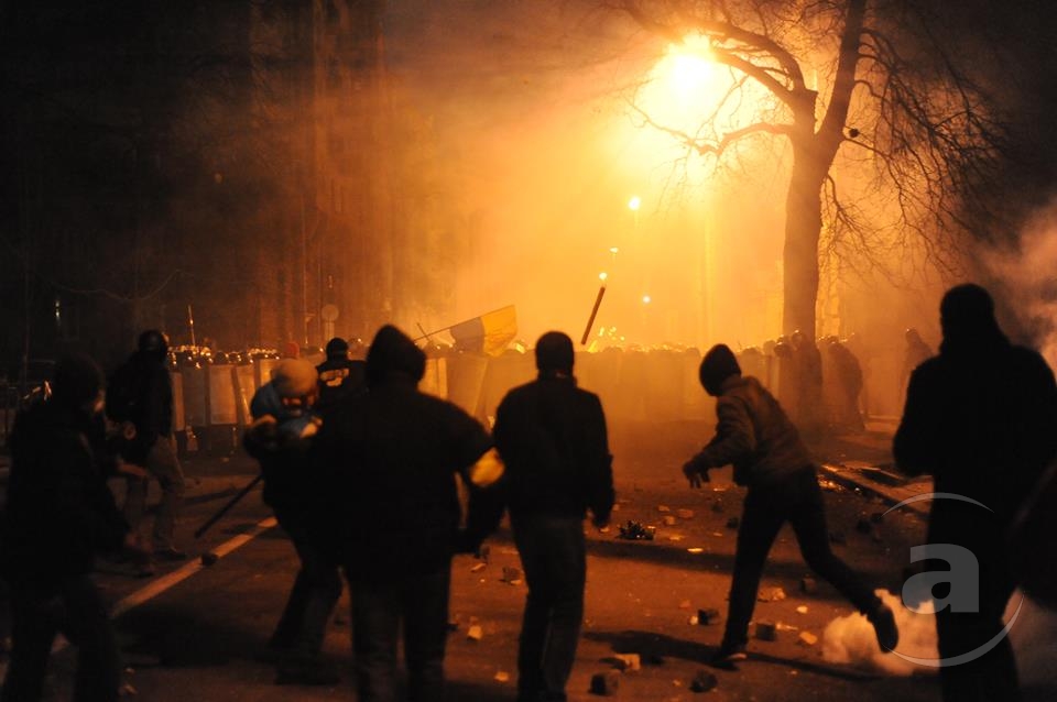 Два штурма. Утром Киевсовет, днём Администрация президента. Оба — очевидно не мирные. Оба оппозиция не признала своими. Информация об участниках и зачинщиках — противоречивая. У Киевсовета обошлось разбитыми стёклами. На Банковой было громко, серьёзно и очевидно опасно. Среди пострадавших — больше десяти журналистов. Многие из них получили травмы, несмотря на то что отчётливо представились «Беркуту». За эти фото фотографу «МедиаПорта» Мстиславу Чернову тоже основательно досталось. Впрочем, он просил обойтись без этих «неинтересных подробностей».