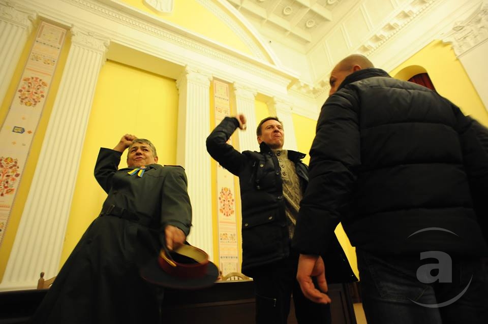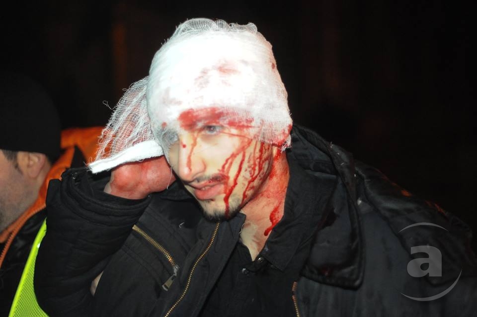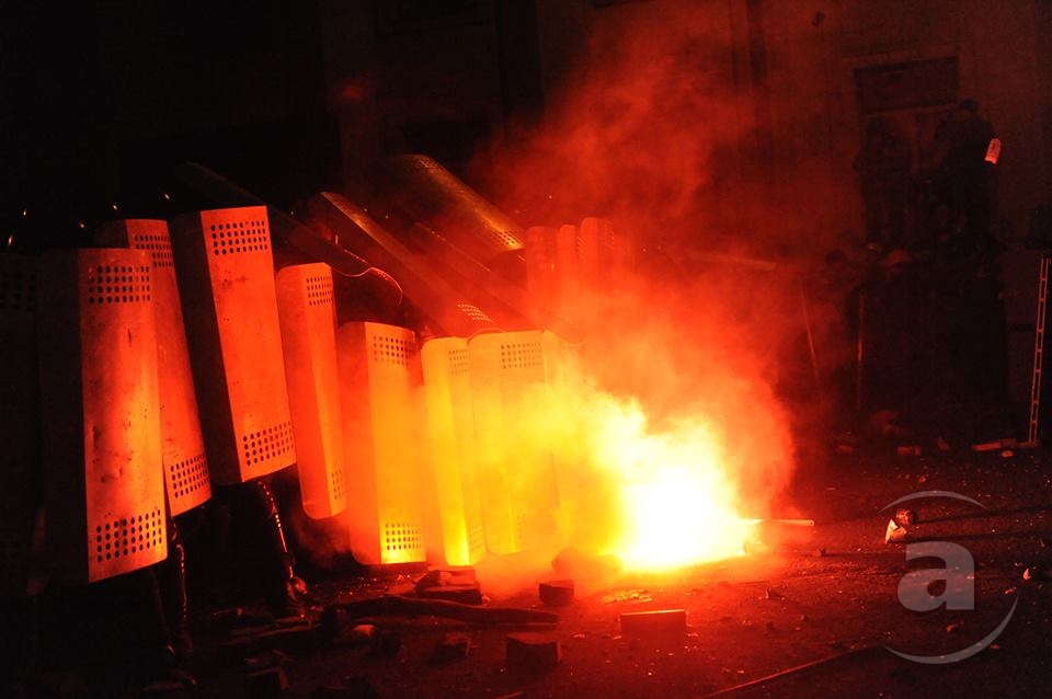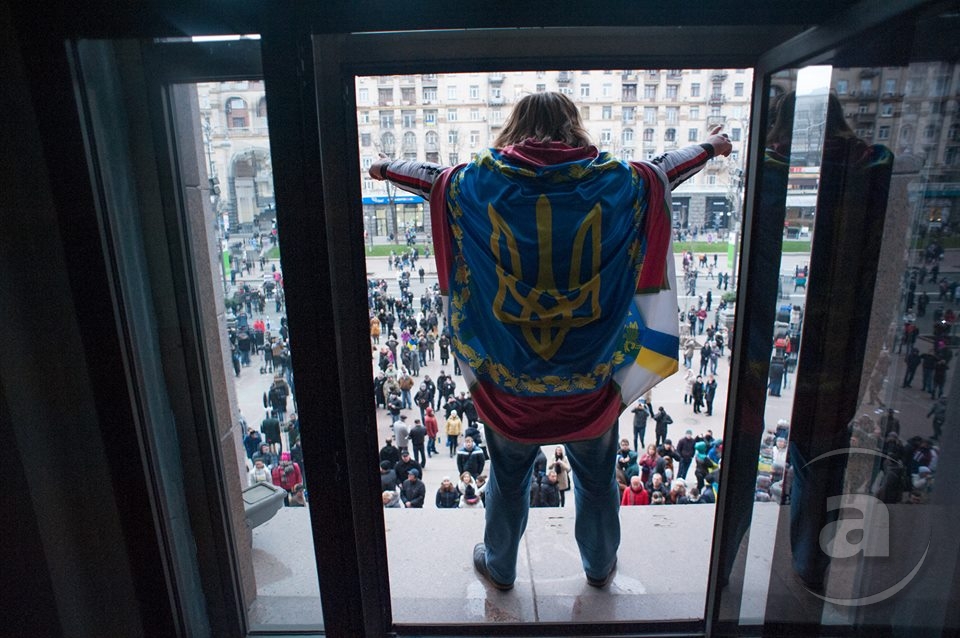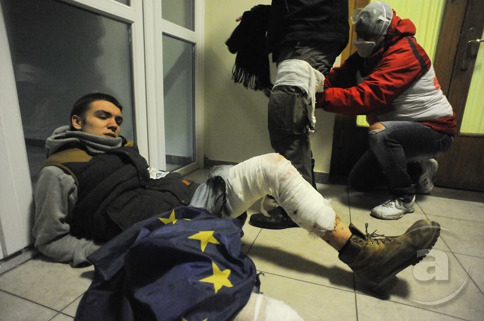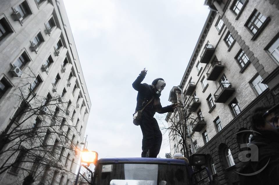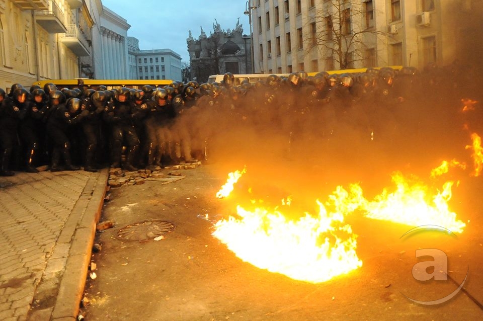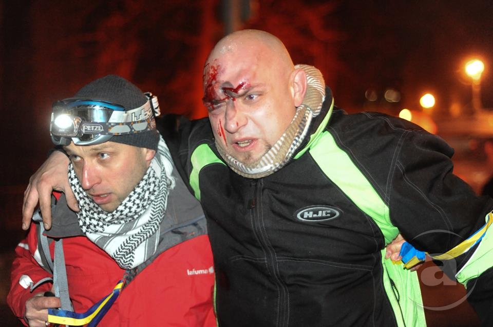 Два штурма. Утром Киевсовет, днём Администрация президента. Оба — очевидно не мирные. Оба оппозиция не признала своими. Информация об участниках и зачинщиках — противоречивая. У Киевсовета обошлось разбитыми стёклами. На Банковой было громко, серьёзно и очевидно опасно. Среди пострадавших — больше десяти журналистов. Многие из них получили травмы, несмотря на то что отчётливо представились «Беркуту». За эти фото фотографу «МедиаПорта» Мстиславу Чернову тоже основательно досталось. Впрочем, он просил обойтись без этих «неинтересных подробностей».
