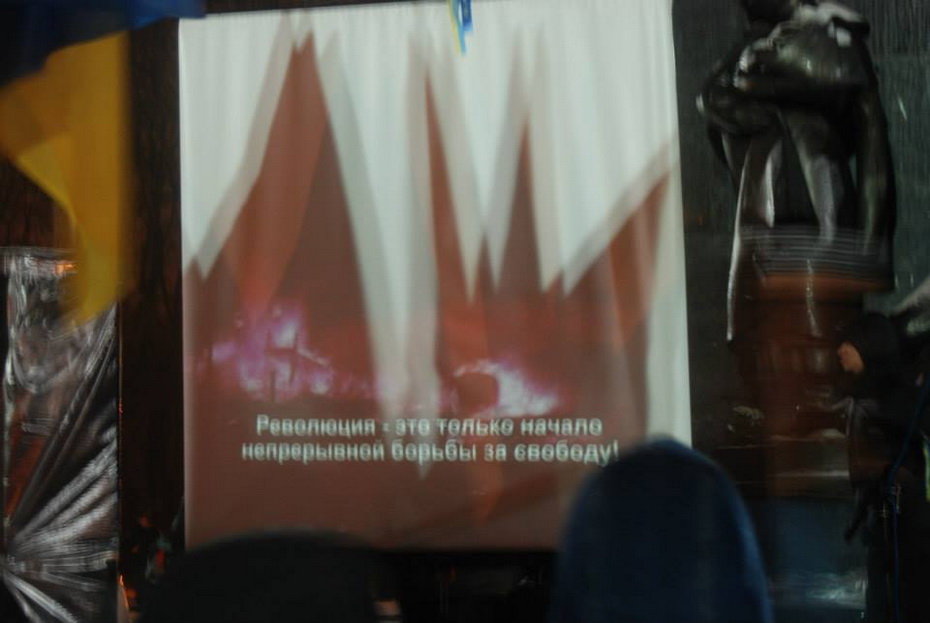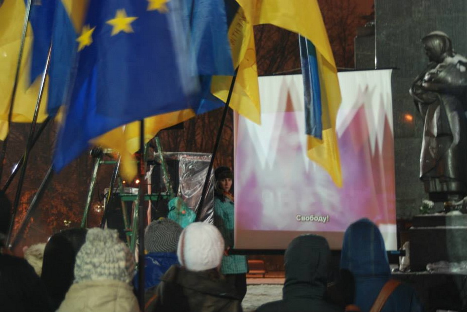 «Революция — это только начало». В пятницу на харьковском Евромайдане у памятника Шевченко показали кино о протестах 68-го года в Париже.
