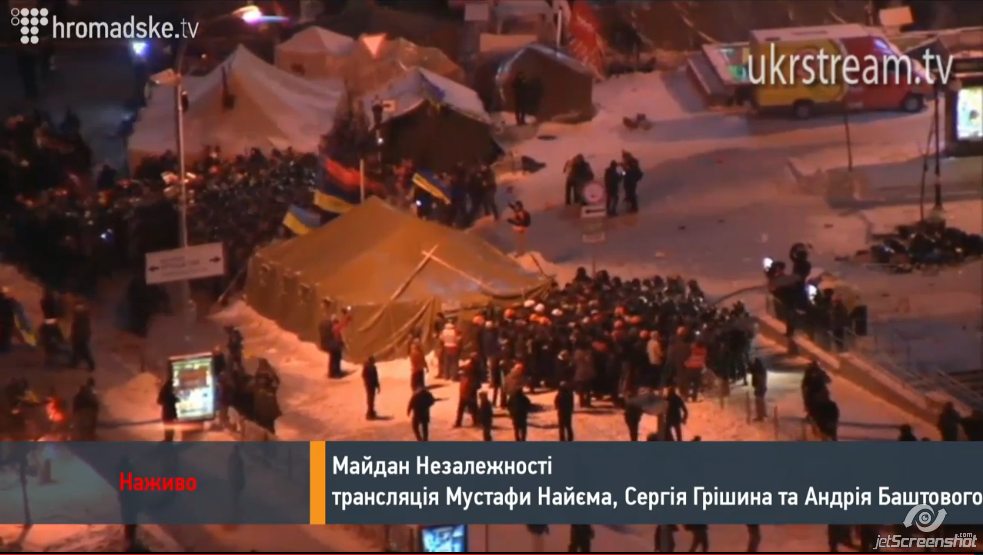 UPD 05:47 Силовики не покидают Майдан, но никаких активных действий не предпринимают. Напряжение несколько спало. На сцене Майдана народные депутаты Соболев, Кужель, Кличко, Шевченко и другие.