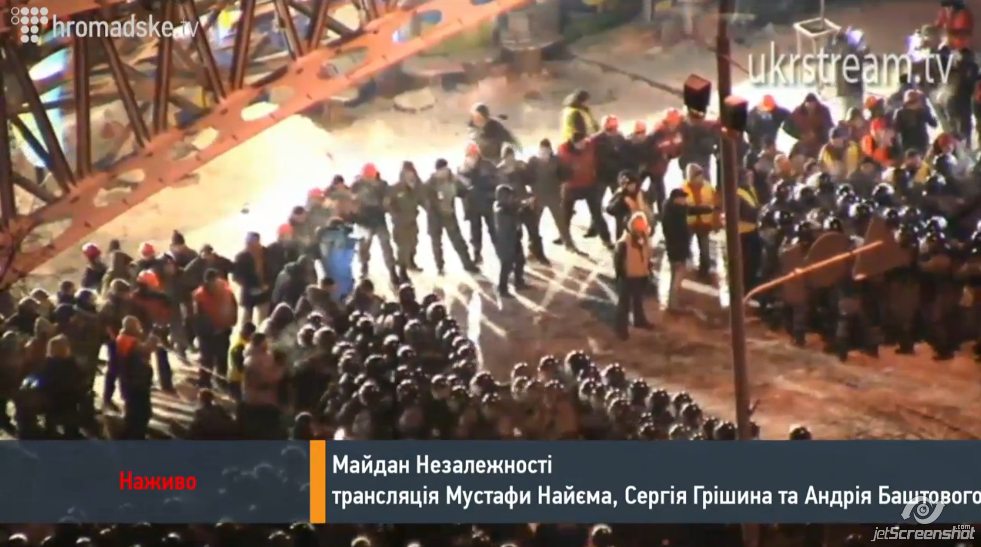 В ночь с 10-го на 11 декабря внутренние войска МВД и спецподразделение «Беркут» начали зачистку здания КГГА и майдана Независимости в Киеве. Предварительно лидерам протестующих было зачитано постановление суда о разблокировании проезжей части прилегающих к Майдану улиц. «МедиаПорт» ведёт текстовую онлайн-трансляцию.