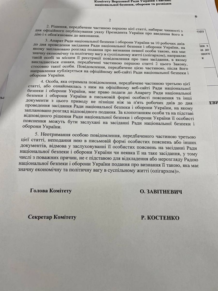 Президент Володимир Зеленський вніс до парламенту законопроєкт про деолігархізацію 2 червня. В Офісі президента тоді заявили, що документ «не порушує основоположних прав людей, які підпадають під визначення олігарха, а лише визначає коло цих осіб і встановлює правила їхніх прозорих взаємовідносин з представниками влади».