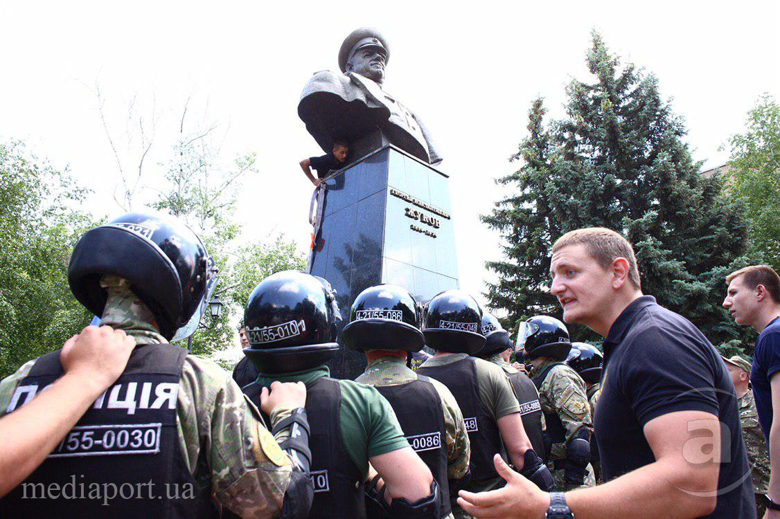 Рік тому, в ніч з 5 на 6 травня, пам’ятник Жукову вже валили. За кілька годин погруддя встановили на місце.