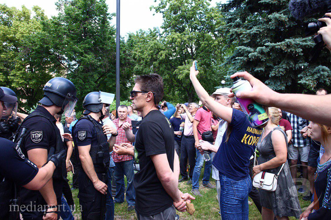 Як повідомляє відділ комунікації Головного управління Нацполіції у Харківській області, під час знесення пам’ятника Жукову на проспекті Петра Григоренка «група невідомих розпилила сльозогінний газ».