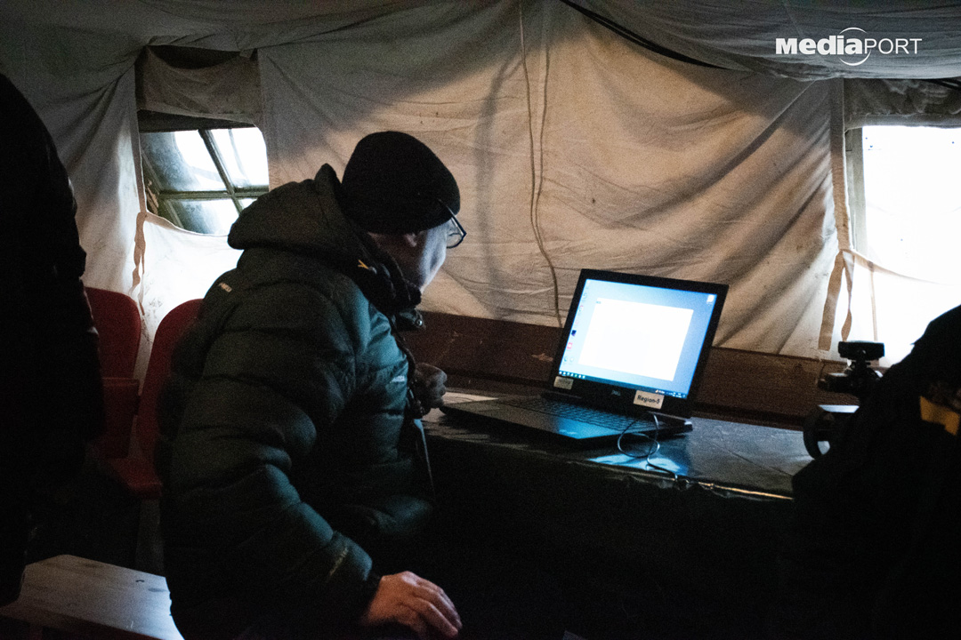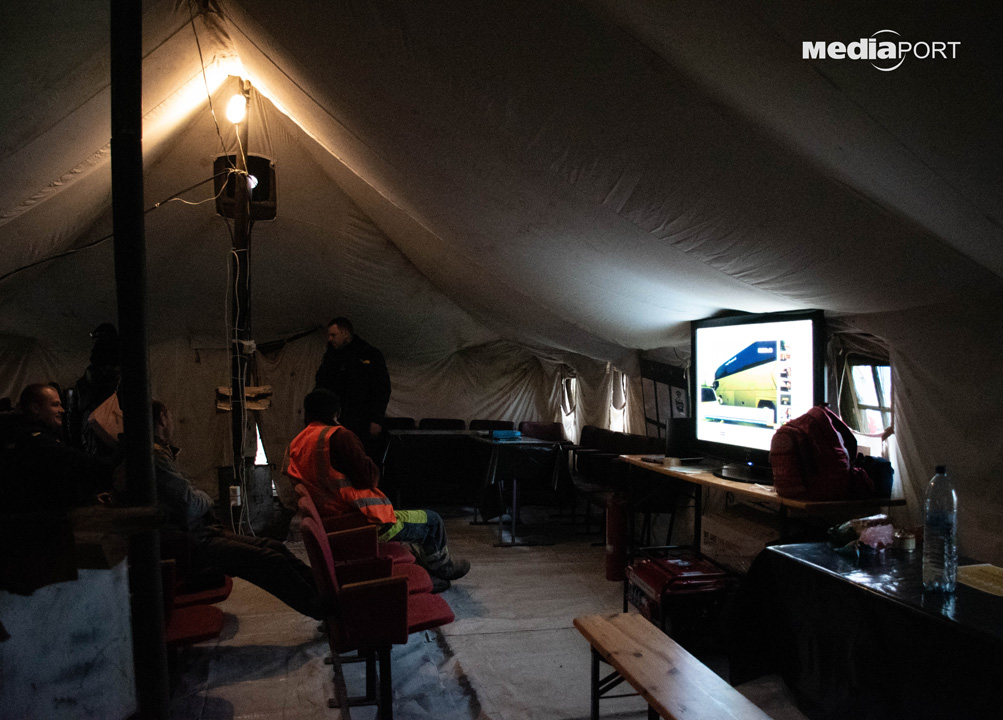 Знімальна група, яка працювала у цей день на Північній Салтівці навіть змогла перекинути звідти відео в редакцію. У наметі також встановили величезний телевізор, в якому транслювався марафон.