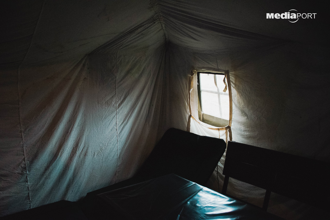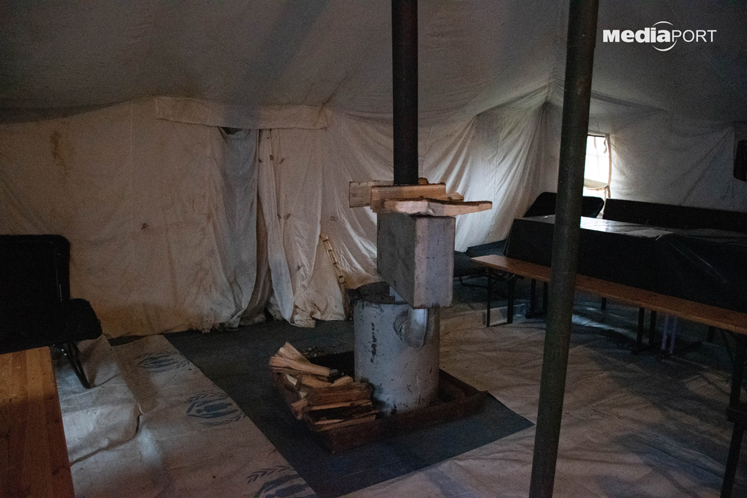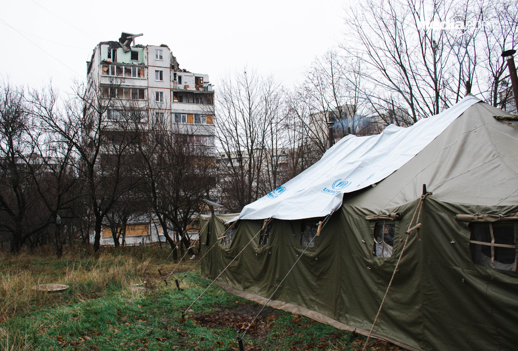 Рятувальники встановили намет між будинками на вулиці Наталії Ужвій. Він опалюється буржуйками, є місце для їжі, розкладачки для відпочинку, Starlink.