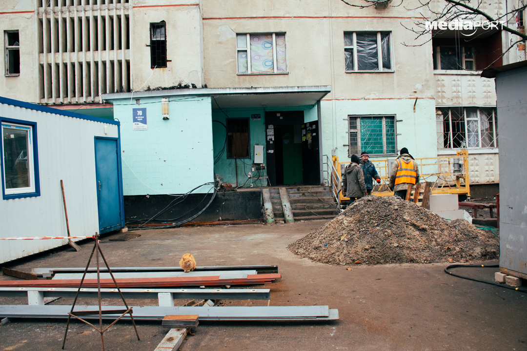 Три сім’ї не виїжджали з дому навіть під час наймасованіших бомбардувань. Мешканці будинків покладають великі надії на будівельників.