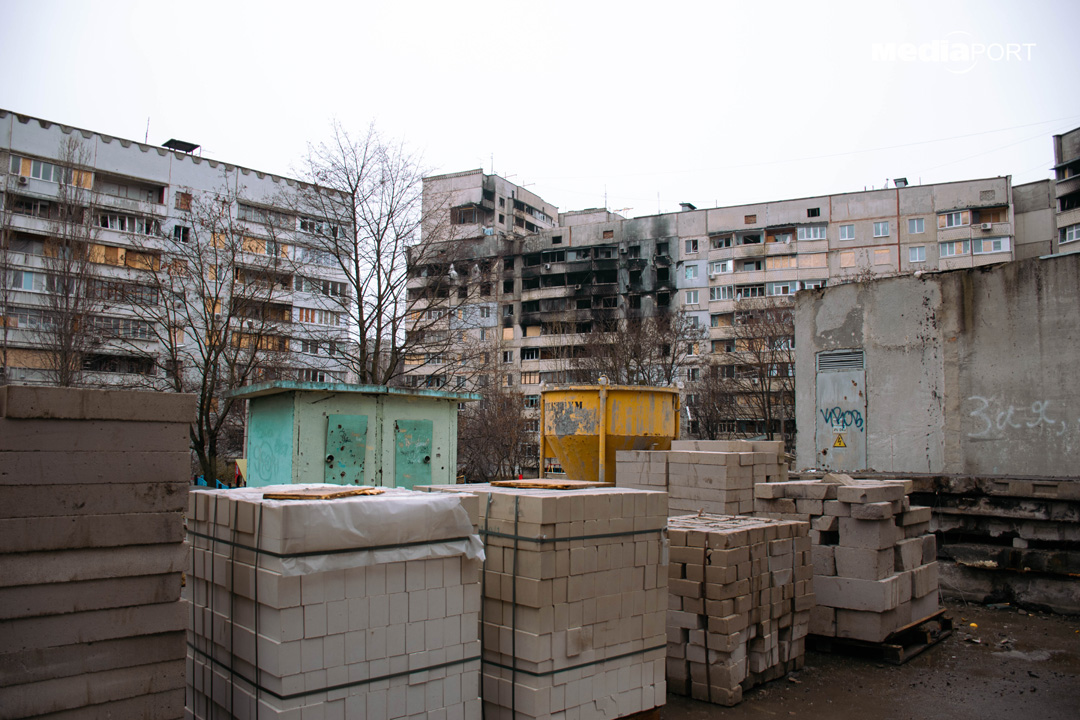 Північна Салтівка потребує капітальної відбудови. У деяких будинках цим займаються будівельники з компанії «Житлобуд». Вони ж єдині, хто прийшов цього ранку зігрітися і випити чаю до «Пункту Незламності».