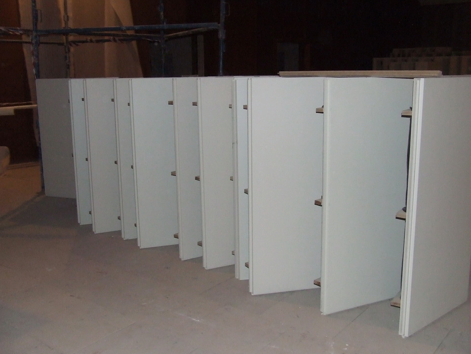 «Они очень тяжёлые, их с места не сдвинешь. По требованию немецких акустиков, они должны весить не меньше 35 килограммов на метр квадратный. Кроме того, они с обратной стороны заглушены.Я надеюсь, что здесь после реконструкции акустика, куда бы вы ни сели, в любую точку зала, она будет одинакова. Благодаря изгибам плит, которые рассчитаны все, я думаю, этого удастся добиться. Задача плит — отразить звук, чтобы он ударился и отлетел», — говорит Юрий Янко.