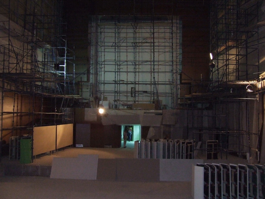 Сейчас все силы строителей брошены на ремонт органного зала, рассказывает Янко. Пол в зале и на сцене уже почти готов — осталось уложить паркет. Стены частично обшиты плитами. Плиты, говорит директор филармонии, утверждала немецкая фирма, которая будет налаживать акустику.