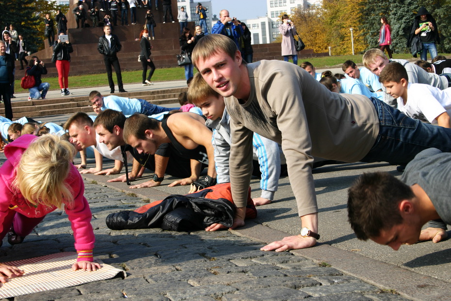 «Рекордная зарядка»: массовые отжимания на площади Свободы