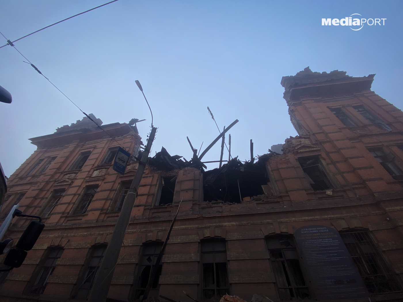 Як уточнили в Головному управлінні Нацполіції в Харківській області, в навчальному закладі в Харкові зруйновані другий і третій поверхи, дах.