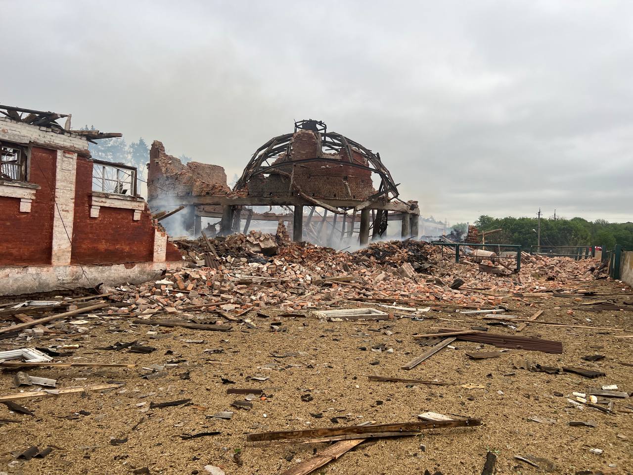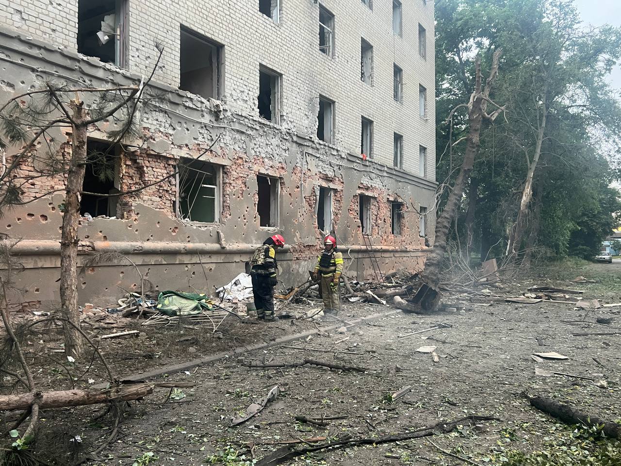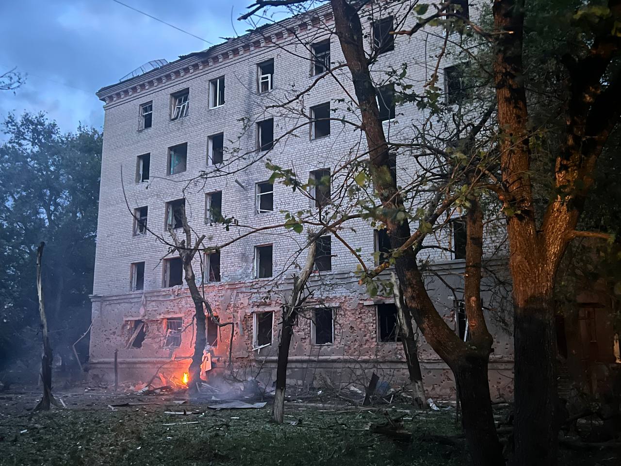 «Два місця влучання ракет на території навчального закладу. Зруйновано будівлю кінно-спортивного клубу. Також частково зруйновано будівлю гуртожитку», — повідомив він.
