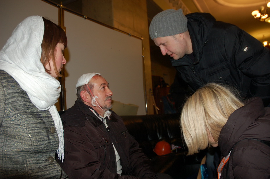 По информации активистов Евромайдана, нескольким протестующим понадобилось спуститься в метро. Их провожали представители самообороны Майдана. Около 19.00 в подземном переходе станции метро «Университет», что расположен возле Дворца пионеров, как рассказывают «евромайдановцы», на них напали люди в спортивной одежде с палками, на одежде которых были георгиевские ленты. В результате пострадали двое.