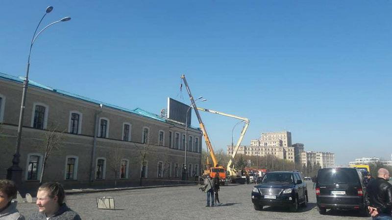 Телевізор на будівлі Палацу дитячої та юнацької творчості, який Харківський міський голова Геннадій Кернес нещодавно назвав «небезпечним» і «незаконно встановленим», сьогодні вранці почали демонтувати.
